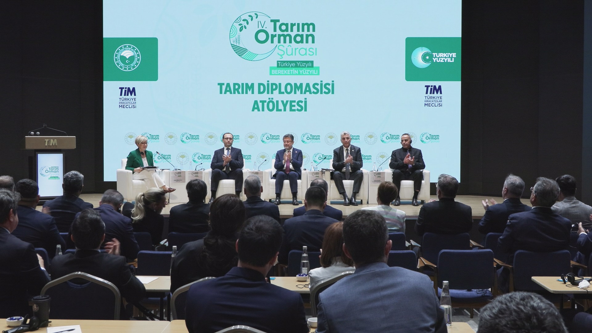Tarım ve Orman Bakanı İbrahim Yumaklı, 4’üncü Tarım Orman Şûrası kapsamında düzenlenen 'Tarım Diplomasisi Atölyesi’nin 'Günümüz Dünyasında Tarım Diplomasisi' başlıklı özel oturumuna katıldı. Türkiye İhracatçılar Meclisi (TİM) Konferans Salonu’nda gerçekleştirilen programa Bakan Yumaklı'ın yanı sıra, Ticaret Bakanı Ömer Bolat, Azerbaycan Tarım Bakanı Mecnun Memmedov ve Suriye Tarım ve Tarım Reformu Bakanı Emced Bedr de katıldı. Oturumda tarım diplomasisinin stratejik boyutları, gıda güvenliği, su kaynaklarının önemi ve ülkelerarası işbirlikleri konuları ele alındı.