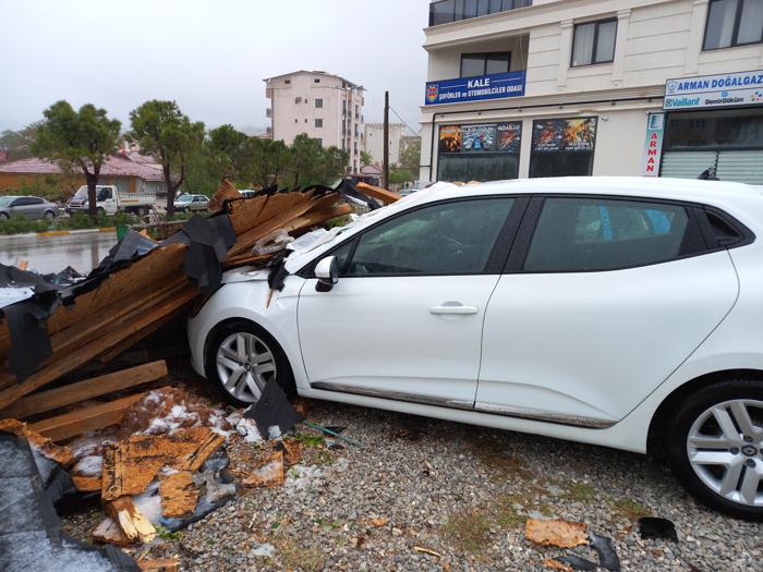 Bir otelin çatısı, gece saatlerinde etkili olmaya başlayan şiddetli rüzgar nedeniyle uçtu. Park halindeki otomobillerin üzerine düşen çatı malzemeleri, 2 otomobilde hasar oluşturdu.