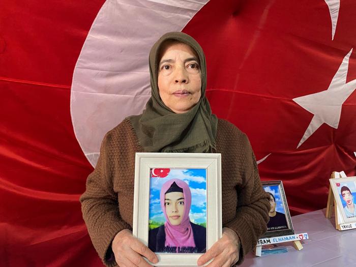 Ellerinde çocuklarının fotoğrafıyla eski HDP il binası önünde bekleyişini sürdüren annelerden Hatice Levent, kızı Fadime'nin yolunu gözlediğini belirtti.