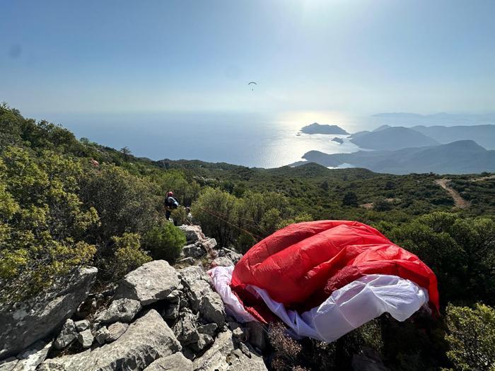 Ölüdeniz Mahallesi'ndeki Babadağ'ın 1200 metre yükseklikteki pistinden yamaç paraşütüyle atlayan Utku Denizatay (24) kısa süre sonra kayalıklara düştü.