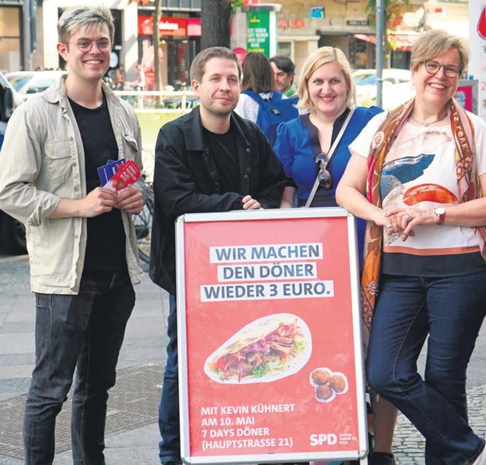 Almanya'da ekmek arası döner fiyatının yüksek olması her platformda dile getirilirken, Sosyal Demokrat Parti'den (SPD) Avrupa Parlamentosu'na aday olan Frederic Augustin ve Kevin Kühnert, döneri seçim kampanyasında kullanmaya başladı.