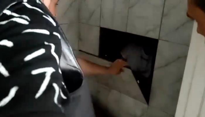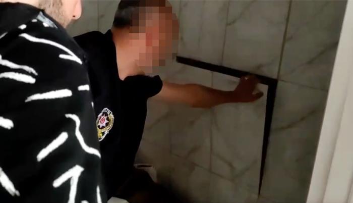 Uygulama kapsamında bir evde arama yapan ekipler, banyodaki duvar fayansının arkasında bölme olduğunu fark etti.
