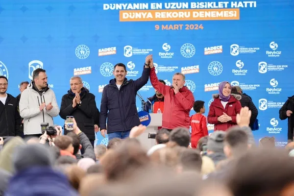 İstanbul Büyükşehir Belediye Başkan Adayı Murat Kurum, Beykoz Belediyesi tarafından düzenlenen 'Dünyanın En Uzun Bisiklet Hattı Dünya Rekoru Denemesi' programında gençlerle bir araya geldi.