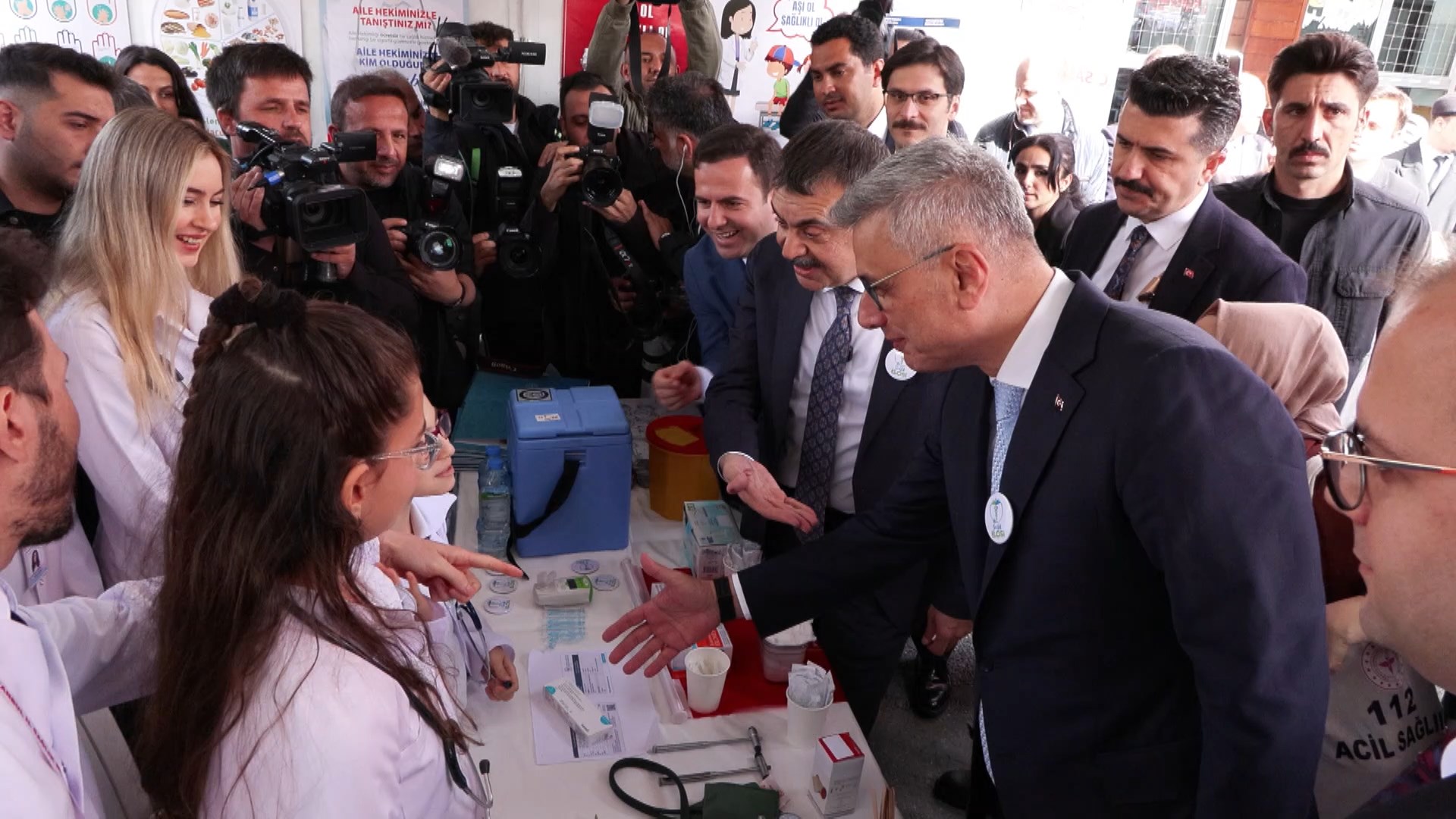 Toplumun sağlığı ile ilgili 3 riskin olduğunu ifade eden Memişoğlu, "Bugün baktığımızda toplumumuzun en büyük risklerinden üç tanesi var. Bunların bir tanesi kilo, kötü beslenme, kötü alışkanlık ve hareketsizlik. Bu üç risk maalesef toplumumuzun önünde. Bunu sadece sağlıkçılar olarak sadece sağlık hizmetleriyle başarma şansımız yok. Bunu toplumun her kesiminin bireyin çabasıyla, bize katkısıyla başarabiliriz. O nedenle çocuklarımızın sağlık bilincini ve kültürünü arttırmak amacıyla oluşturduğumuz bu program esasında farklı amaçta gidiyor. Bu nedir? Sınıflarda veya derslerde öğrendikleri sağlık bilgisini aynı zamanda covidde, depremde kahramanlıklar gösteren onlarla gurur duyduğum sağlık çalışanlarının abileri ablalarıyla beraber burada ambulanslarına, UMKE araçlarına, acil durum hastanelerine dokunarak ve bugünü hayatlarının en önemli anılarından bir tanesi olarak hissederek çocuklarımızın sağlığını ve sağlıkçıyı aynı zamanda koruyucu sağlığı benimsemesini amaçlıyoruz. Bu esasında bugün yaptığımız iş gelecekteki toplum sağlığını aynı zamanda sağlıklı bir toplumu oluşturacaktır" dedi.