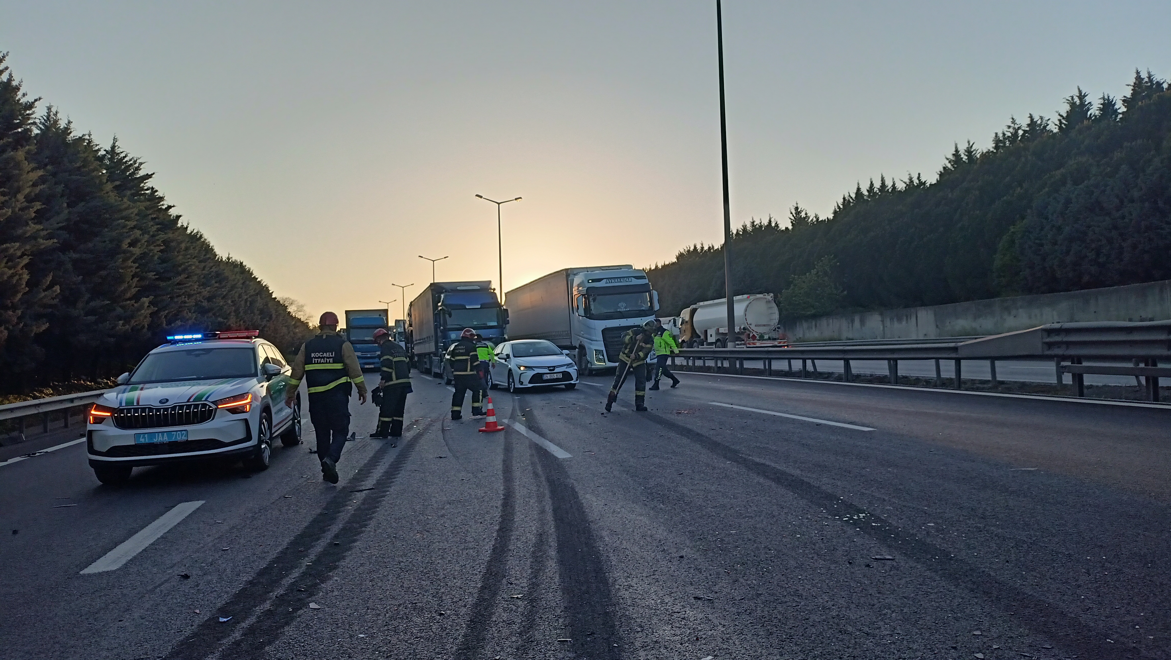 Kaza, saat 18.30 sıralarında TEM Otoyolu İzmit Batı Gişeleri yol ayrımında meydana geldi. Ankara istikametine seyir halinde olan H.Ö. idaresindeki 14 ACA 638 plakalı kamyon, A.G. yönetimindeki 06 FCE 783 çekici plakalı TIR ve İ.Ö. idaresindeki 06 FAD 328 dorse plakalı TIR henüz bilinmeyen nedenle çarpıştı. Çevredeki sürücülerin ihbarı üzerine bölgeye sağlık, itfaiye ve jandarma ekibi sevk edildi. Kazada hafif şekilde yaralanan A.G., olay yerine gelen sağlık ekiplerince ambulansta tedavi edilirken, itfaiye ekipleri ise araçları kontrol etti.