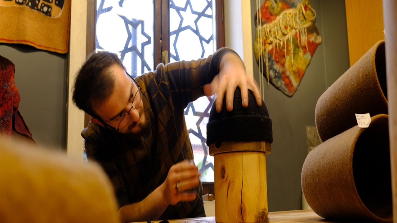 Babasının dedesinin 130 yıl önce başladığı keçeciliği 4'üncü kuşak olarak devam ettiren Yunus Girgiç (34), İrfa Medeniyeti Araştırma ve Kültür Merkezi'ndeki atölyesinde, Hazreti Mevlana'nın 752'nci Vuslat Yıl Dönümü Uluslararası Anma Törenleri nedeniyle yoğunluk yaşıyor.