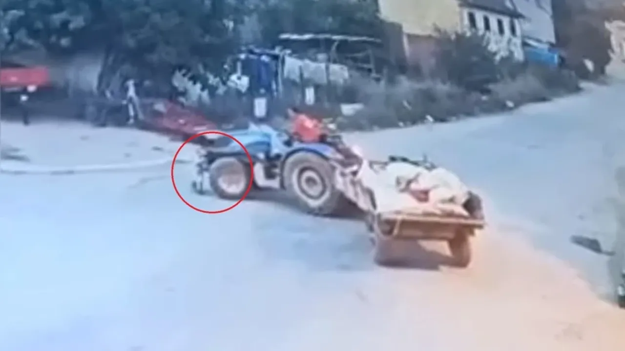 Kaza anı bir iş yerinin güvenlik kamerası tarafından kaydedildi. Görüntülerde, çocuğun seyir halindeki traktörün önüne koşarak geldiği, traktörün ön ve arka lastiklerinin çocuğun üzerinden geçtiği, durumu fark eden sokaktaki aile bireylerinin çocuğu kucaklayıp koştukları görüldü.