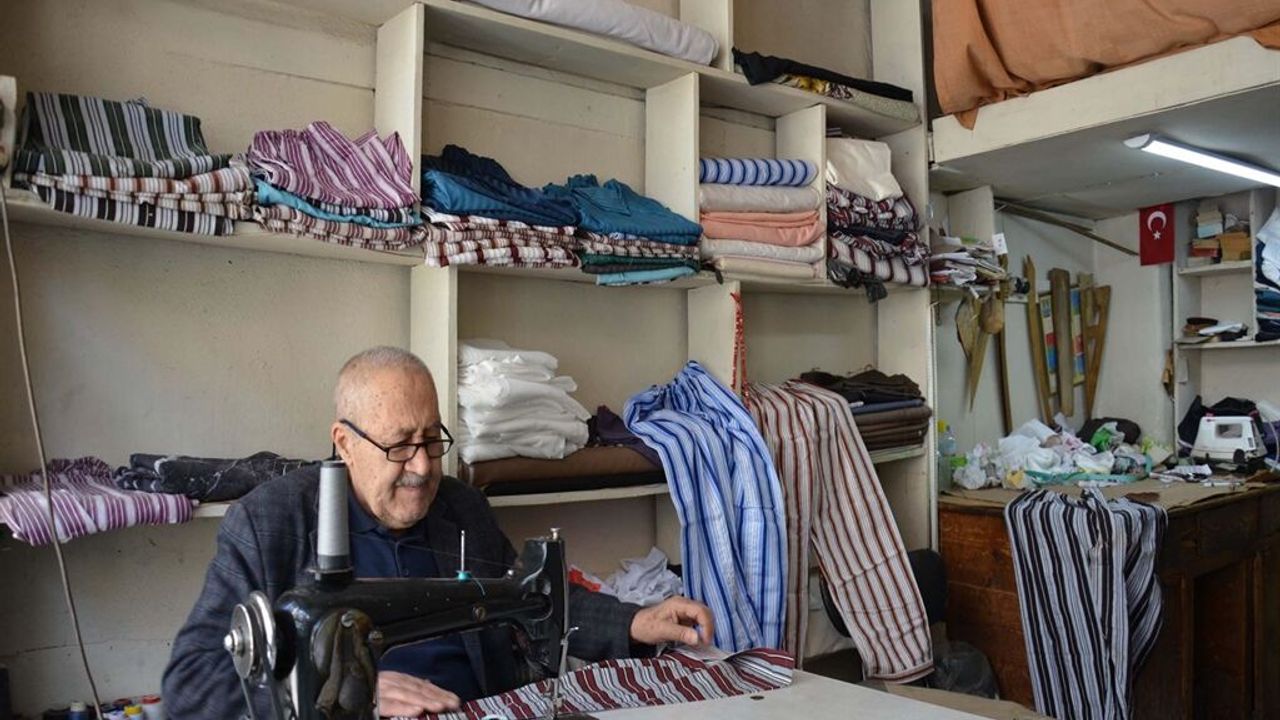 Türkiye'nin bir dönemine damga vuran, Yeşilçam filmlerinden aile sıcaklığına kadar hafızalarda yer edinen 'çizgili pijama' geleneği, Manisa'nın Demirci ilçesinde 12 metrekarelik bir dükkanda yeniden hayat buluyor. 1960, 1970 ve 1980'lerin sonuna kadar Türkiye'nin 'ev üniforması' haline gelen, halk arasında 'çizgili pijama' olarak bilinen takımlar, Öztemel'in ellerinde yeniden canlanıyor. Hacıhasan Mahallesi Yağcılar Sokak'taki babası ve ağabeyinden devraldığı dükkanında mesleğini 60 yıldır aynı hevesle sürdüren Terzi Yaşar Öztemel, teknolojiye ve hazır giyime inat, el emeği göz nuru dökerek ürettiği çizgili pijamalarla nostalji yaşatıyor. İlerleyen yaşına rağmen iğne, ipliği elinden düşürmeyen Öztemel, dükkanındaki tarihi dikişi makinesiyle geleneksel yöntemle üretimini sürdürüyor. Unutulmaya yüz tutan bu nostaljik çizgili pijamaların son dönemde gelen özel siparişlerle yeniden rağbet görmeye başladığını belirten Öztemel, Çizgili pijamanın sadece bir giyecek değil, bir kültür olduğunu söyledi. Çizgili pijama kumaşının içinin pamuklu olduğunu belirten Öztemel, "Kışın sıcak, yaz dönemlerinde ise serin tutar. Ben de gücüm yettiğince çizgili pijama geleneğini yaşatmaya, gelen siparişleri eski usullerle dikmeye devam ediyorum" dedi.