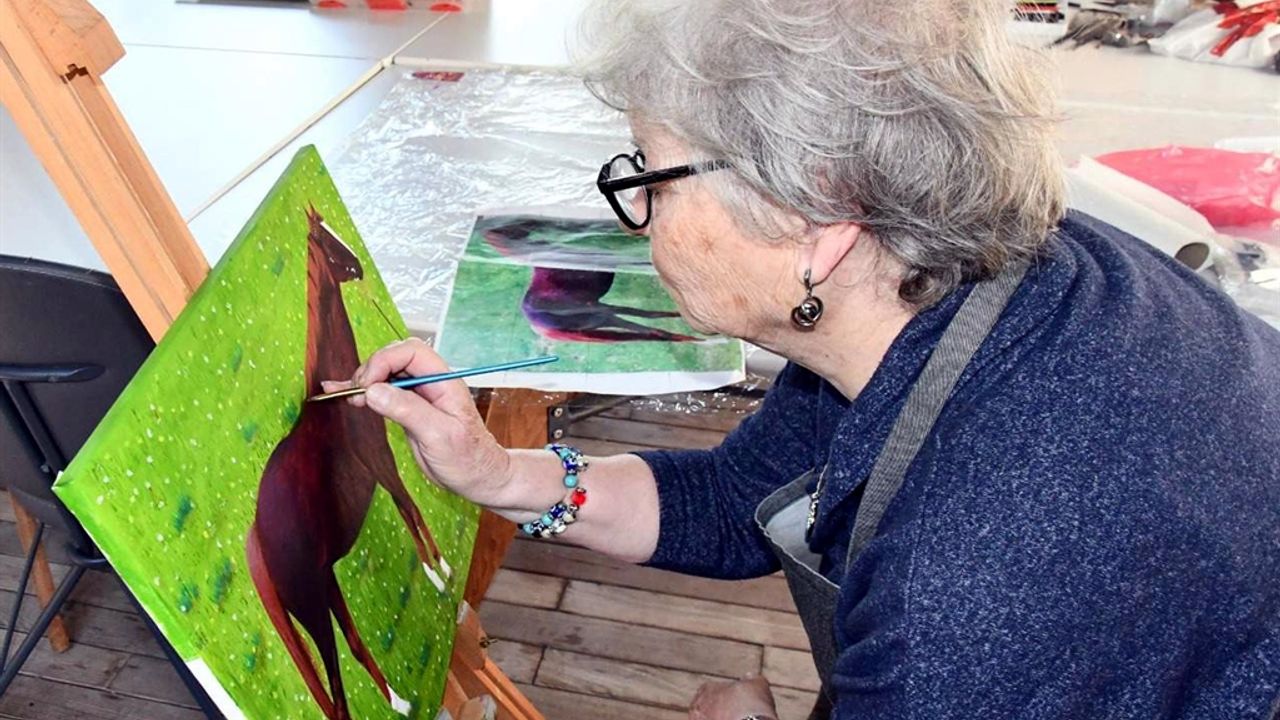 Almanya'da 3 sergi açtığını söyleyen Hanife Uysal, "Bu sene yine açmayı düşünüyorum. Herkesin de yapmasını istiyorum. İnsanı dinlendiriyor. Buraya dönüş yaptım, birkaç ameliyat geçirdim ve geçirdiğim büyük ameliyatlardı. Fakat ben bundan hiçbir zaman vazgeçmedim. Her zaman elimden fırçamı bırakmadım. Ben pek durak bilmeyen bir kişiyim. Devamlı böyle şeylerle meşgul olmayı seven bir kişiyim. 80 yaşındayım, 'Beni ayakta tutan resimler' diyorum. 'Benim mücadelem' diyorum. 3 çocuğum var, hepsini büyüttüm. Tek başıma okuttum, babaları 31 yıl önce vefat etti ve onları büyüttükten sonra kendime yaşamaya başladım. Resimlerimle beraber, 10 tane torunum var. Yaşıma göre kimisi yapma diyor, kimisi nasıl uğraşıyorsun diyor. Bilmiyorum yani ben seviyorum ve herkesin de sevmesini tavsiye ediyorum. Çünkü insana gerçekten terapi oluyor. Dikiş dikerken bile resimle kendimi deşarj ediyordum. Boş durmuyorum, beynimi hep çalıştırmaya zorluyorum. Herhalde bunlara da muvaffak oluyorum diyorum" diye konuştu.