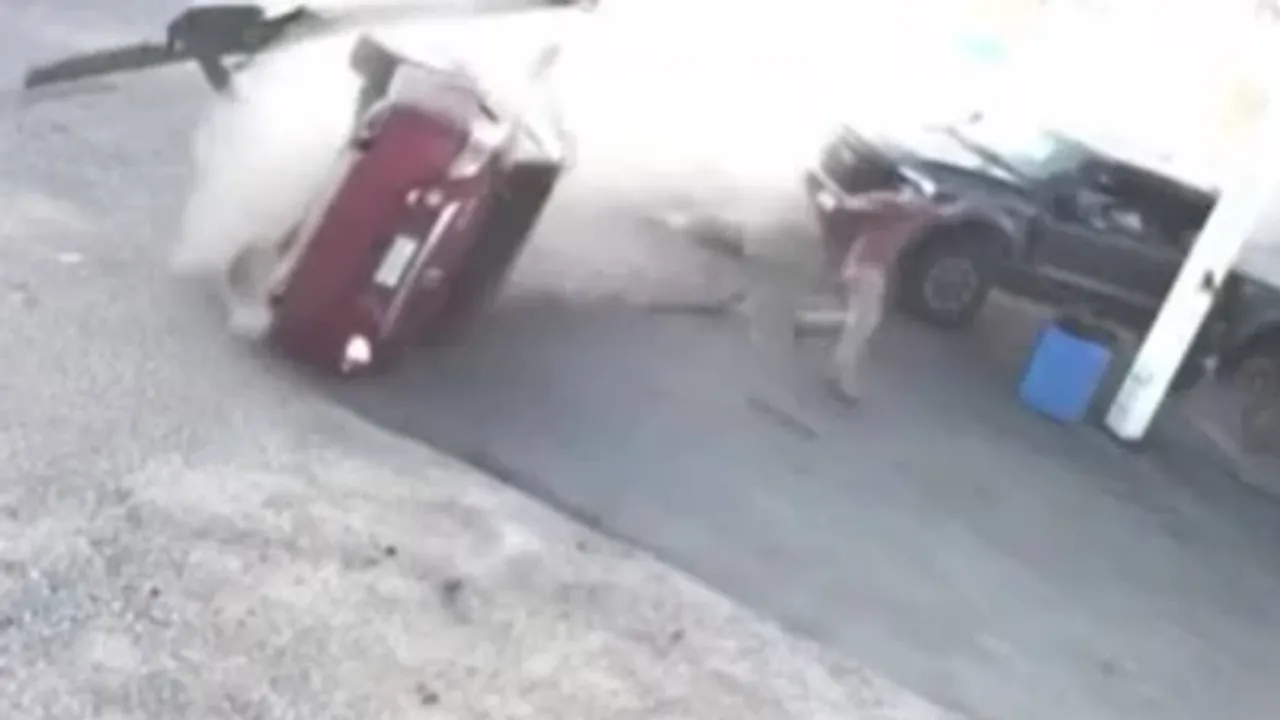 Olay, Brady kentindeki bir benzin istasyonunda yaşandı. Aracının camlarını temizleyen bir kişi, hızla kontrolden çıkan ve yan yatan otomobilin üzerine doğru geldiğini fark etti. Adamın saniyeler içinde kaçmasıyla olası bir ölümden dönüldü.