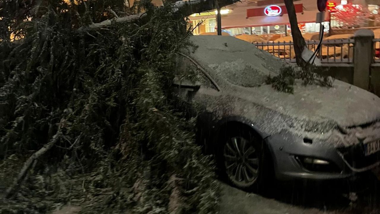 Olay, akşam saatlerinde Sağlık Mahallesi'nde bulunan İzzet Baysal Devlet Hastanesi Köroğlu Ünitesinin acil servisi önünde meydana geldi. Kentte etkili olan kar yağışı nedeniyle karla kaplanan çam ağacı ortasından yarıldı. Ağacın dalları park halinde olan acil serviste görevli bir doktorun aracının üzerine düştü. Araçta hasar meydana gelmezken yaralanan da olmadı.