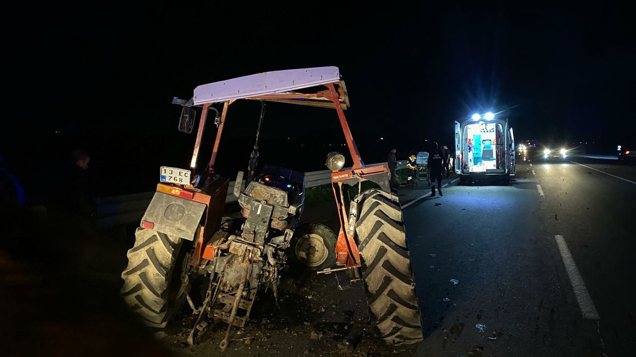 Kaza, akşam saatlerinde Yumurtalık Yolu'nda meydana geldi. İddiaya göre, Narlık istikametinden ilçe merkezine doğru seyreden Selçuk T. yönetimindeki 13 EC 768 plakalı traktöre, aynı yönde ilerleyen Bekir T. idaresindeki otomobil arkadan çarptı. Çarpmanın etkisiyle traktör ikiye ayrıldı. Kazada 2 sürücü ile araçlarda yolcu olarak bulunan 4 kişi yaralandı. İhbar üzerine kaza yerine çok sayıda sağlık ve jandarma ekibi sevk edildi. Yaralılar, sağlık ekiplerinin ilk müdahalesinin ardından ambulanslarla hastaneye kaldırıldı. Jandarma, kazayla ilgili soruşturma başlattı.