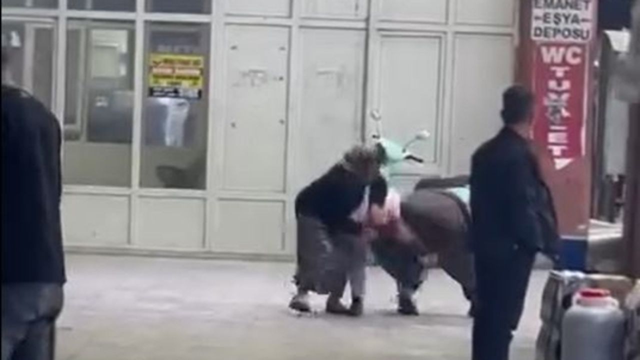 Adana Merkez Otogarı'nda iki kadının saç saça baş başa kavga ettiği anlar, çevredeki vatandaşlar tarafından cep telefonu kamerasıyla kayda alındı.