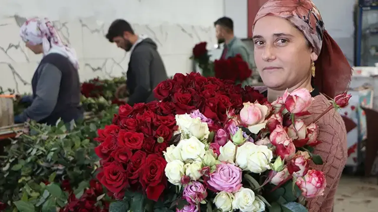 Sevgililer için her renkten gül yetiştiren çift, sabahın ilk ışıkları ile mesai başlıyor ardından uzun uğraşlar sonucu kestikleri gülleri mezada gönderiyor.