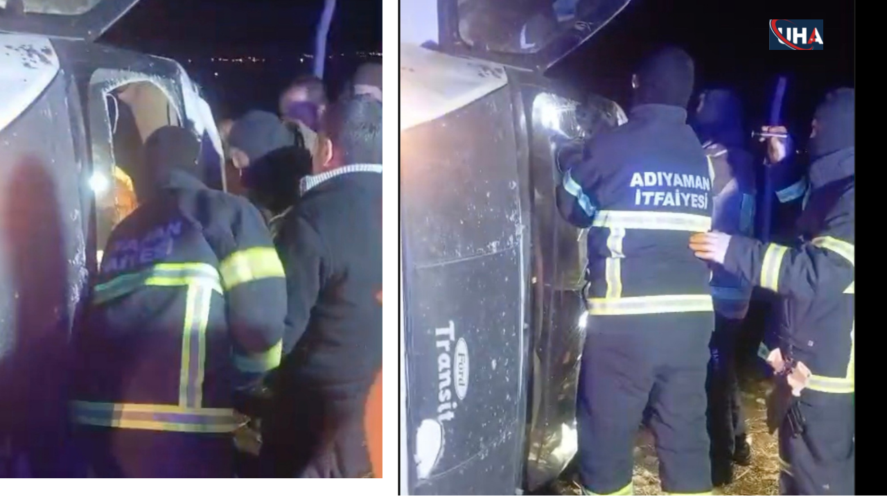 Kaza, sabahın erken saatlerinde Adıyaman- Kahta kara yolunun 10’uncu kilometresinde meydana geldi. 02 ADM 225 plakalı minibüs, sürücüsünün direksiyon hakimiyetini yitirmesi sonucu şarampole devrildi. Araçta sıkışan Zeki Y., İsmail A., Cerrah E. ve Ahmet Ç., yaralandı. İhbarla bölgeye UMKE, sağlık ve itfaiye ekipleri sevk edildi. Yaralılar, UMKE ekipleri tarafından sıkıştıkları yerden çıkartıldı. Yaralılar, sağlık ekibinin müdahalesinin ardından Adıyaman Eğitim ve Araştırma Hastanesi’ne kaldırıldı. Tedaviye alınan yaralıların sağlık durumunun iyi olduğu öğrenildi.