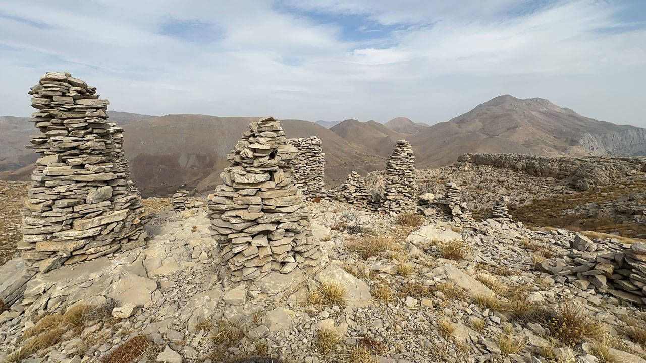 Adıyaman'ın Gerger ilçesinde ot toplamaya köylüler, Orta Asya ülkelerinde yaygın olan ve yolcuların, çobanların yön bulmasını sağlayan taşların üst üste konulmasıyla yapılan 2-3 metre yüksekliğindeki "obo"ları buldu.