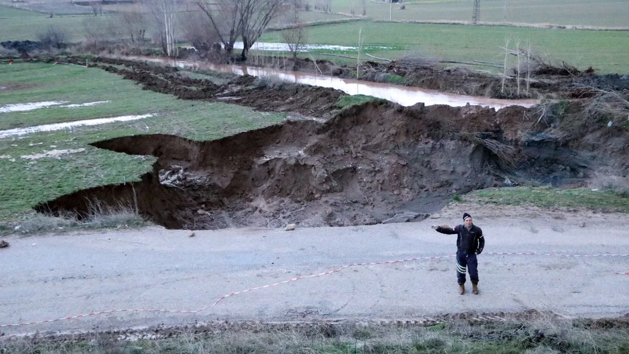 İlçede aralıklar halinde yaklaşık bir haftadır yağmur etkili oldu. Önceki gün şiddetini artıran yağış nedeniyle Hüdai kaplıcaları ile Örenkaya köyü arasında bulunan, kenarından Hamam Çayı'nın aktığı yolda çukur oluştu. Yolun bitişiğinde 4 metre derinliğinde 25 metre genişliğinde göçükler sonucu oluşan çukur genişledi. Vatandaşların haber vermesi sonucu bölgede inceleme yapan Devlet Su İşleri yetkilileri olası kazalara karşı yolu trafiğe kapattı.