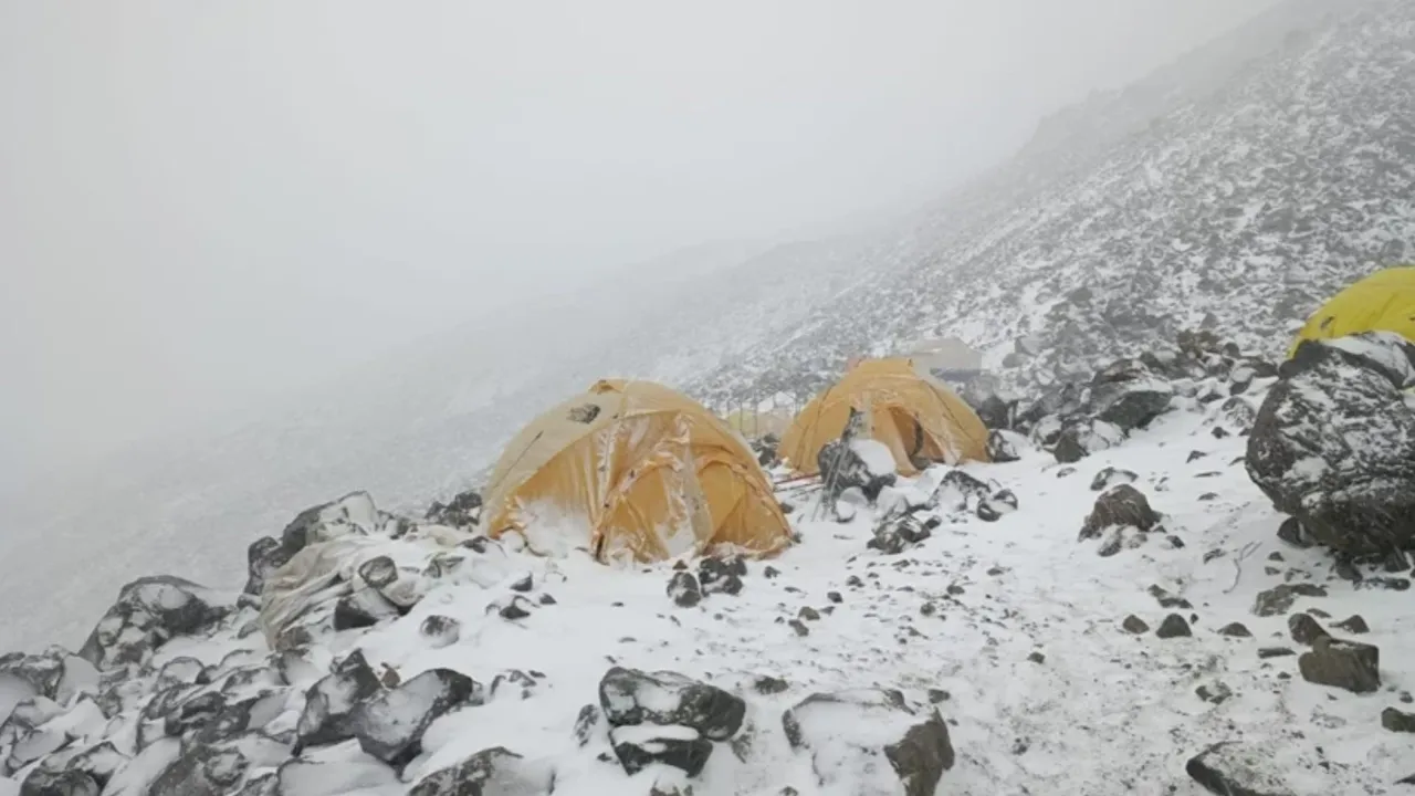 Zirveye ulaşmayı hedefleyen dağcılar, yüksek kesimlerde etkili olan yoğun kar yağışı, fırtına ve sisle mücadele etti. 4 bin 200 metrede tipi şeklinde kendini gösteren kar, görüş mesafesini sıfıra indirirken, dağcıların güvenliği riske attı. Ekip, kötü hava koşullarının tehlikeli boyuta ulaşması üzerine tırmanışa ara vererek kamp alanına geri döndü.