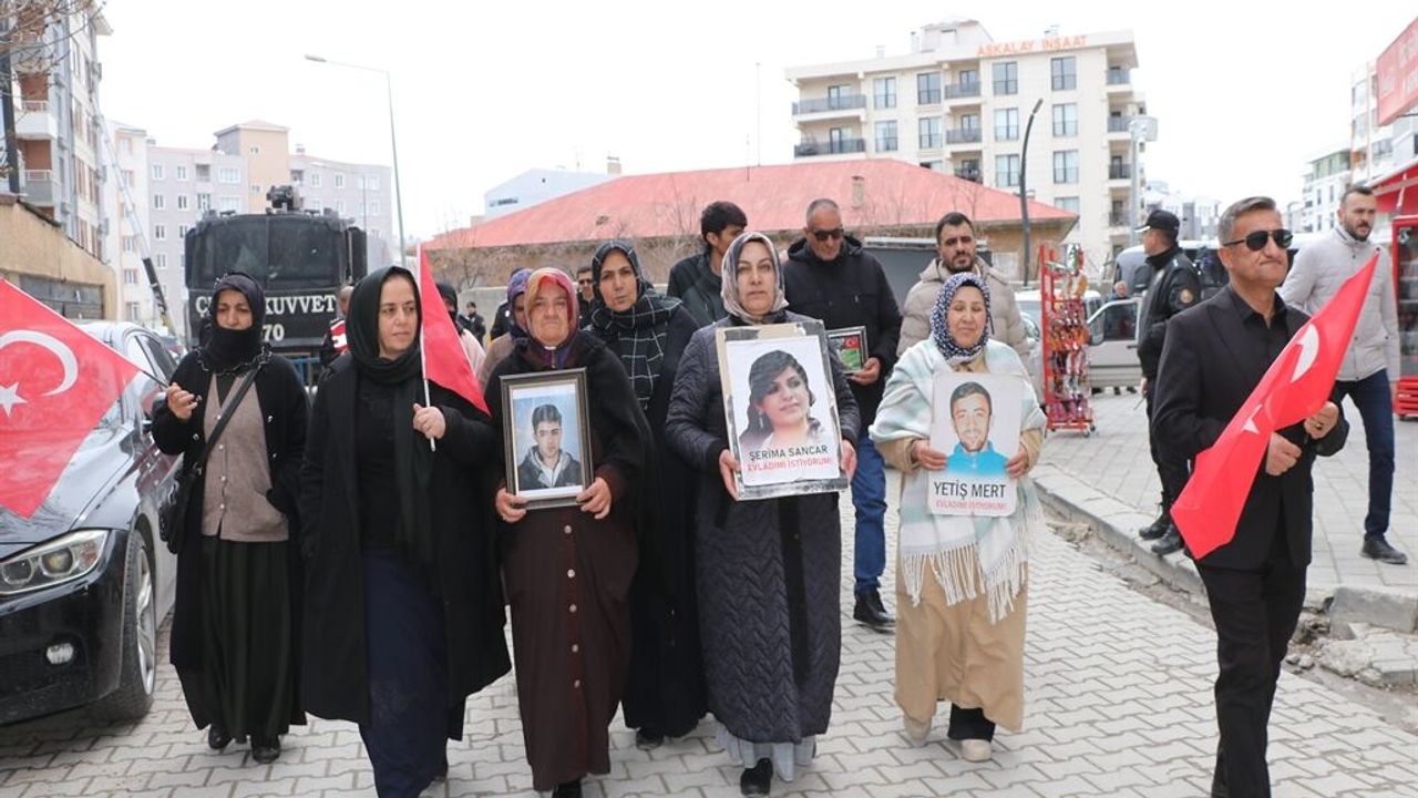 Terör örgütü PKK tarafından çocukları kaçırılan aileler, Menekşe Sokak’ta bir araya geldi. Ellerinde Türk bayrakları ve çocuklarının fotoğraflarını taşıyan aileler, slogan atmadan DEM Parti İl Binası’na kadar yürüdü. 119'uncu haftada süren yürüyüş sırasında polis ekipleri geniş güvenlik önlemi alırken, parti binasından da müzik açılmadı.