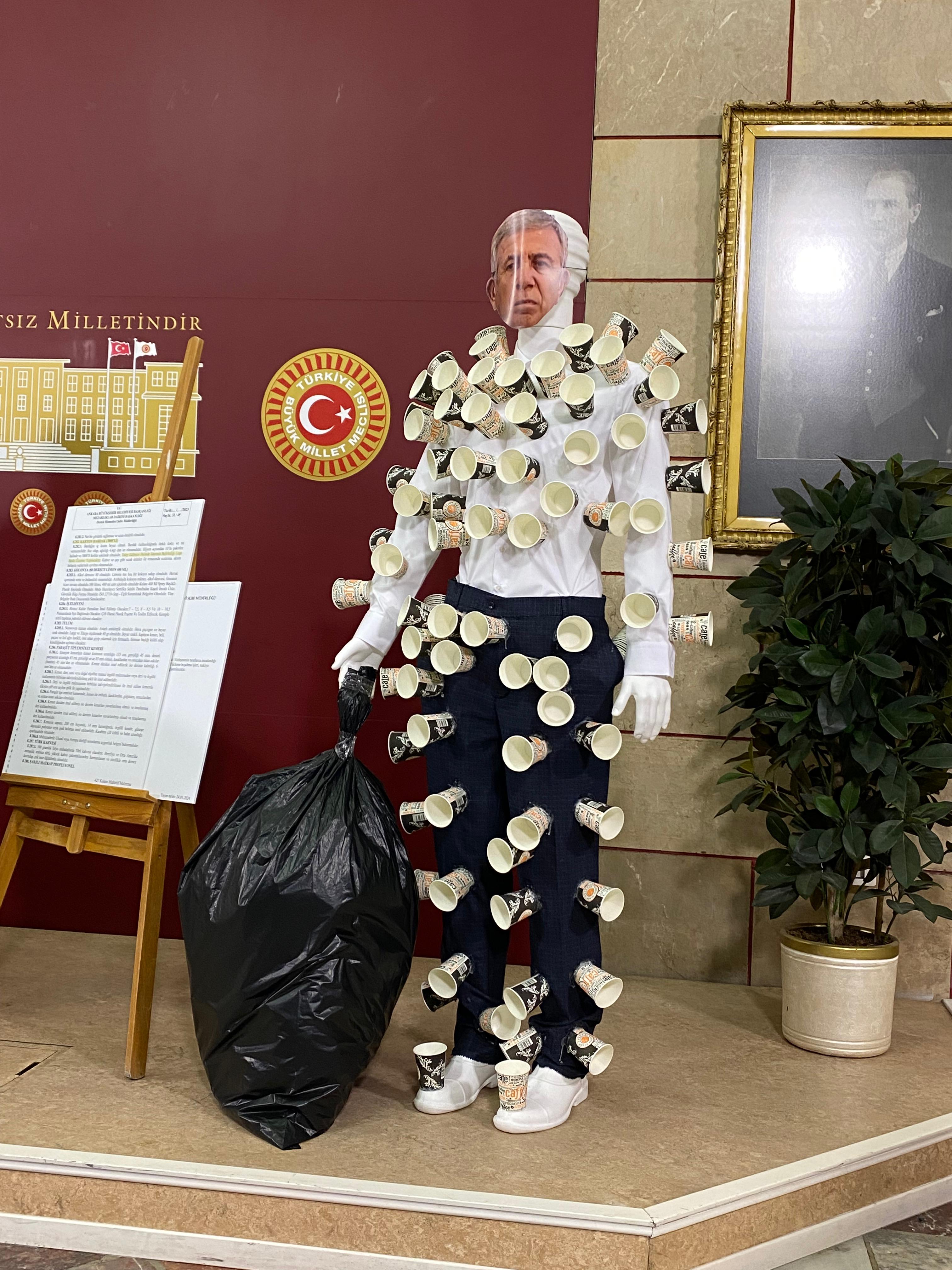 AK Parti Ankara Milletvekili Osman Gökçek, üzerinde, '45 milyon bardak nerede' yazılı döviz ve Ankara Büyükşehir Belediye Başkanı Mansur Yavaş'ın maketi ile basın toplantısı düzenledi. Gökçek, belediyenin 159 milyon liralık ihale düzenlediğini ve söz konusu ihalede dikkat çeken kalemlerin bulunduğunu belirterek, "Örnek vermek gerekirse bir bardak konusu var. Şimdi 15 bin koli bardak satın alınıyor. Her bir kolinin içerisinde 3 bin tane bardak var. Toplamda 45 milyon adet bardak alınıyor. Bu bardaklar 25 TIR malzeme ediyor ve ABB'ye teslim edildi. Öncelikle olarak bunların nerelerde olduğunu, hangi depolarda olduğunu sormak istiyorum. 45 milyon tane bardak konusunda bir araştırma yaptık. Bugün Ankara'da, biliyorsunuz vatandaşlarımız hayatlarını kaybediyorlar ve onların defin işlemleri gerçekleştiriliyor. Ve günlük ortalama 5 bin civarında vatandaşımız buradaki bu cenaze törenlerine katılıyor, taziyelere değil, cenaze törenlerine. Ankara'da tüm mezarlıklara günde 5 bin kişi geliyor. Yani, 'Er kişi niyetine' diyor hoca, 'Hatun kişi niyetine' dediği zaman, insanların acısını paylaştığımız andan bahsediyorum, bu esnada birçoğumuz çay içmez; ama farz edelim ki günlük gelen 5 bin vatandaşımızın 3 bini çay içsin; 41 yıl Ankara'ya cenaze işlerinde yetebilecek kadar bardak alınmış" ifadelerini kullandı.