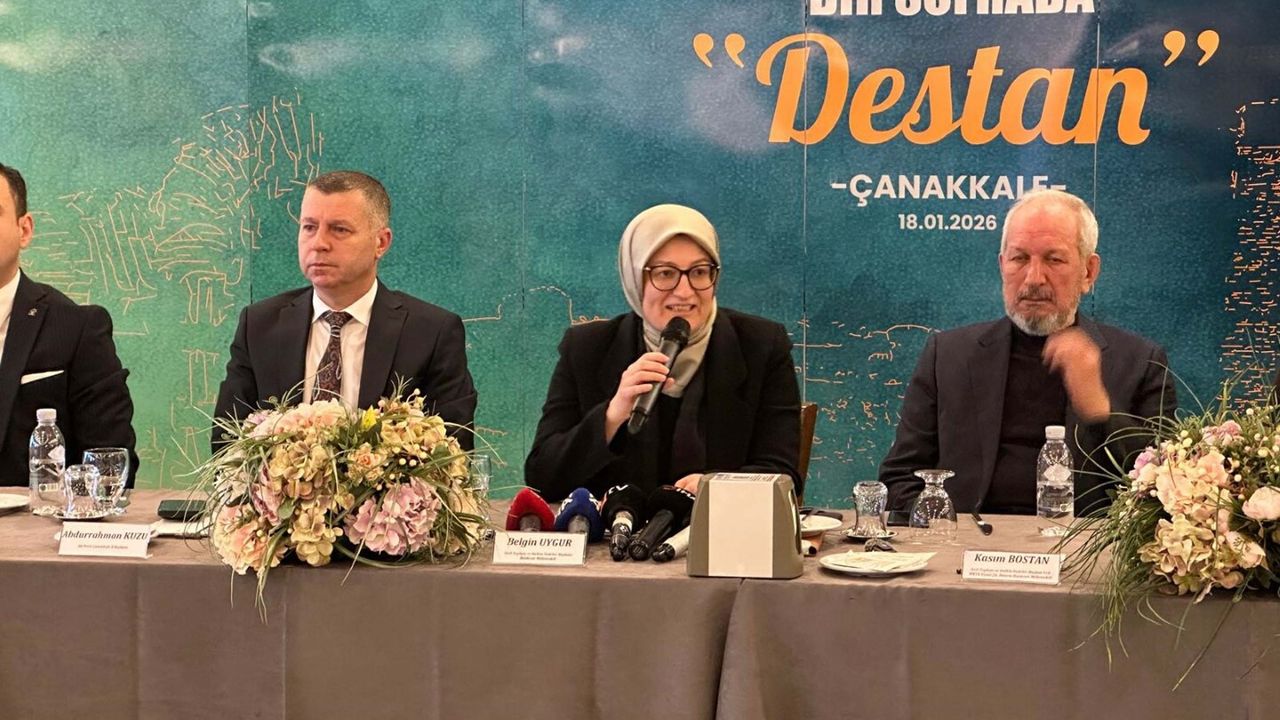 Bir Sofrada 'Destan' programlarının Çanakkale’de 10’uncusunu gerçekleştirdiklerini söyleyen Uygur, “Bugüne kadar Türkiye’nin farklı şehirlerinde; farklı toplumsal kesimlerle, farklı hikayelerle, aynı samimiyet ve aynı hassasiyetle bir araya geldik. Çünkü bu toprakların hamurunda sevgi var, hoşgörü var, cana kıymet veren kadim bir irfan var. İşte biz o irfandan beslenerek çıktık yola. Balıkesir’de Bir Sofrada 'Demokrasi' ile millet iradesinin vakarını temsil ettik. İstanbul’da Bir Sofrada ‘Teşkilat’ ile birlikte yol yürümenin bereketini paylaştık. Bursa’da Bir Sofrada ‘Rumeli-Balkan’ ile tarihimizin izini sürerken, kardeşliğimizin köklerini yeniden yeşerttik. Sivas’ta Bir Sofrada ‘Canlar’ ile inançların ve gönüllerin aynı sofrada buluşabildiğini gösterdik. Kırşehir’de Bir Sofrada ‘Ahiler’ ile emeğin, üretmenin ve paylaşmanın kıymetini hatırladık. Kahramanmaraş’ta Bir Sofrada ‘İhya ve İnşa’ ile yeniden ayağa kalkmanın, umudu diri tutmanın iradesini ortaya koyduk. İzmir’de Bir Sofrada ‘İlle de Roman’ ile gönülleri yan yana getirmenin, birlikte yaşama kültürünü güçlendirmenin değerini yaşadık. Şırnak’ta Bir Sofrada ‘Şehr-i Nuh’ ile kadim coğrafyamızın taşıdığı kardeşlik mirasını geleceğe bağladık. Konya’da Bir Sofrada ‘Vuslat’ ile hasretin muhabbete, buluşmanın hikmete dönüştüğü bir iklimi paylaştık. Bugün ise Çanakkale’de Bir Sofrada ‘Destan’ ile imanın iradeye, fedakarlığın kararlılığa dönüştüğü o büyük yürüyüşü aynı sofrada, aynı bilinçle sürdürüyoruz" ifadelerini kullandı.