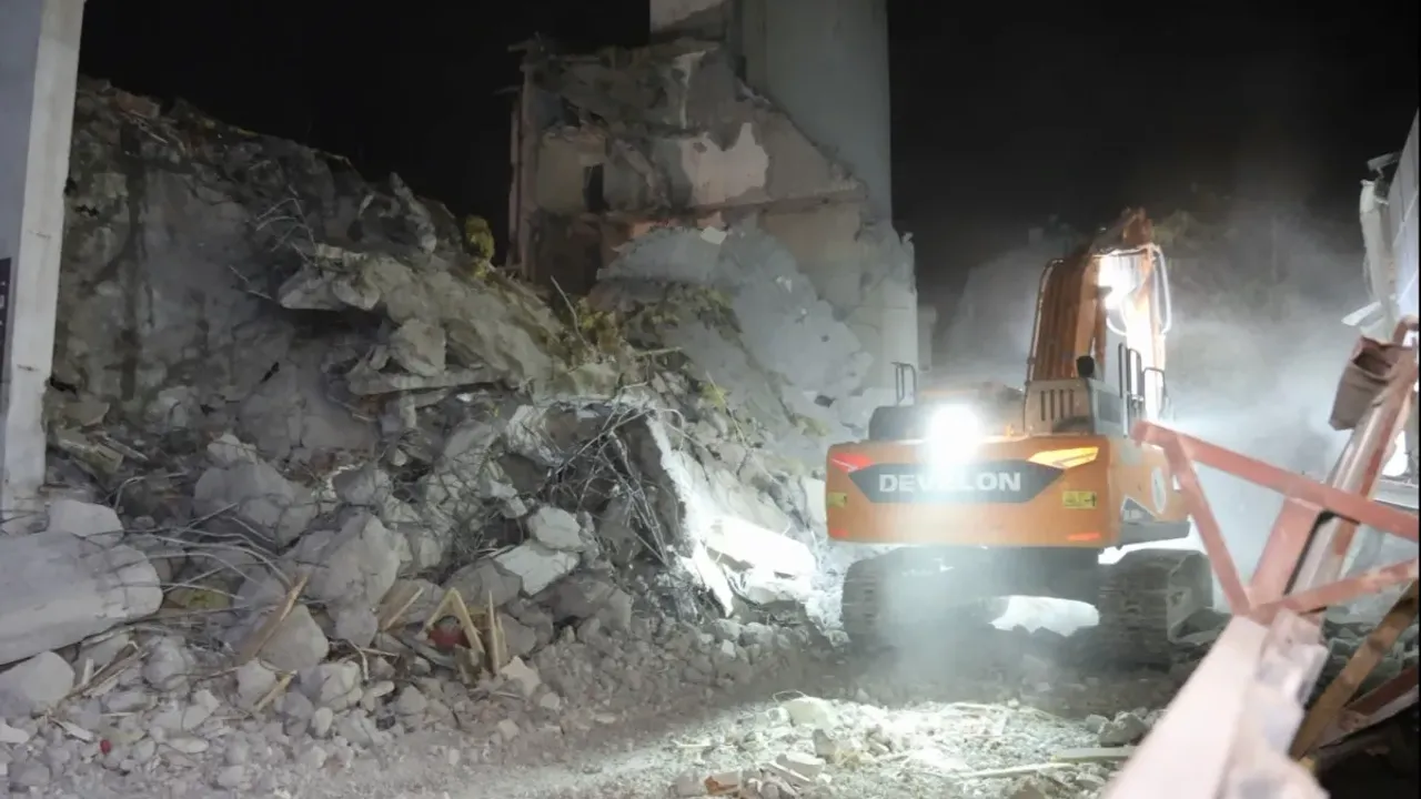 Yıkımın gece olması büyük bir faciayı önlerken, polis ekipleri yıkım yerinde inceleme yaptı.