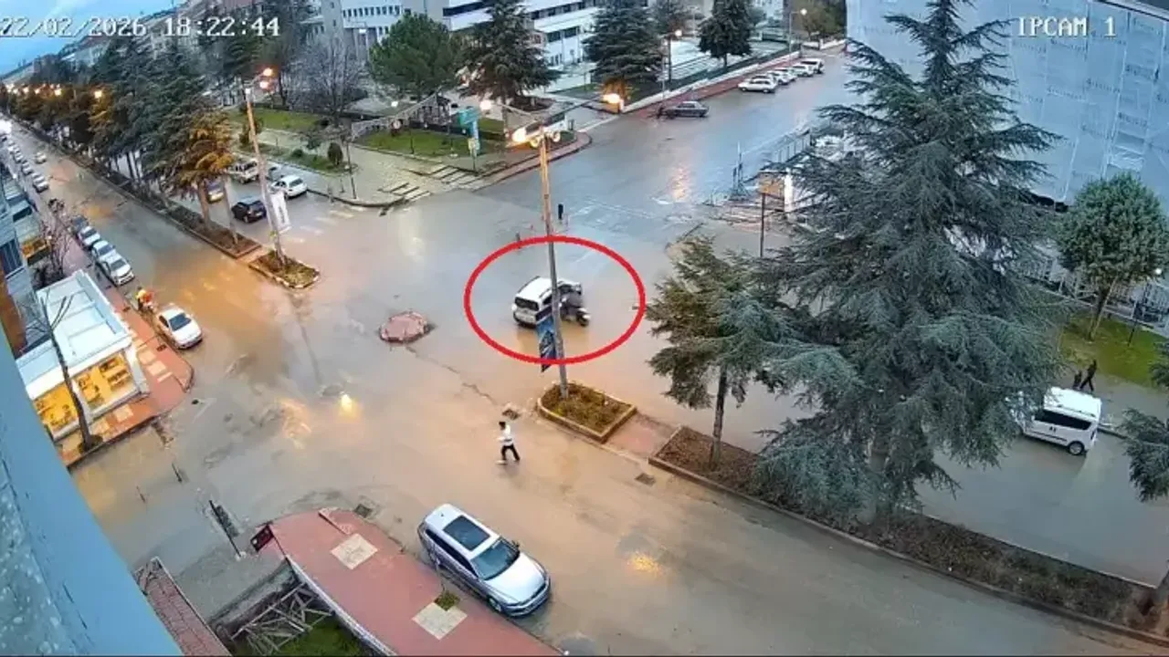 Kaza, Taştan Sönmez Bulvarı Kavşağı'nda meydana geldi. Burak Y. kontrolündeki 05 AFC 850 plakalı motosiklet, kavşaktan dönüş yapan Mehmet A. yönetimindeki 05 AAB 084 plakalı hafif ticari araca yandan çarptı. Çarpmanın etkisiyle yere savrulan motosiklet sürücüsü ve arkasındaki arkadaşı Cemal E. yaralandı. Çevredekilerin ihbarıyla kaza yerine polis ve sağlık ekipleri sevk edildi. Yaralılar ambulanslarla Merzifon Devlet Hastanesi'ne kaldırıldı. Diğer yandan kaza güvenlik kamerasına yansıdı.
