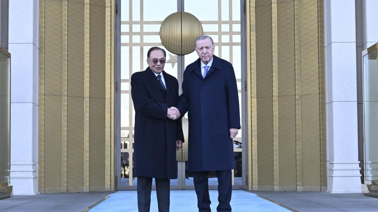 Ardından Cumhurbaşkanı Erdoğan ve İbrahim, birbirlerine heyetlerini takdim etti. Cumhurbaşkanı Erdoğan ve İbrahim, merdivenlerde Türkiye ve Malezya bayrakları önünde tokalaşarak basın mensuplarına poz verdi.