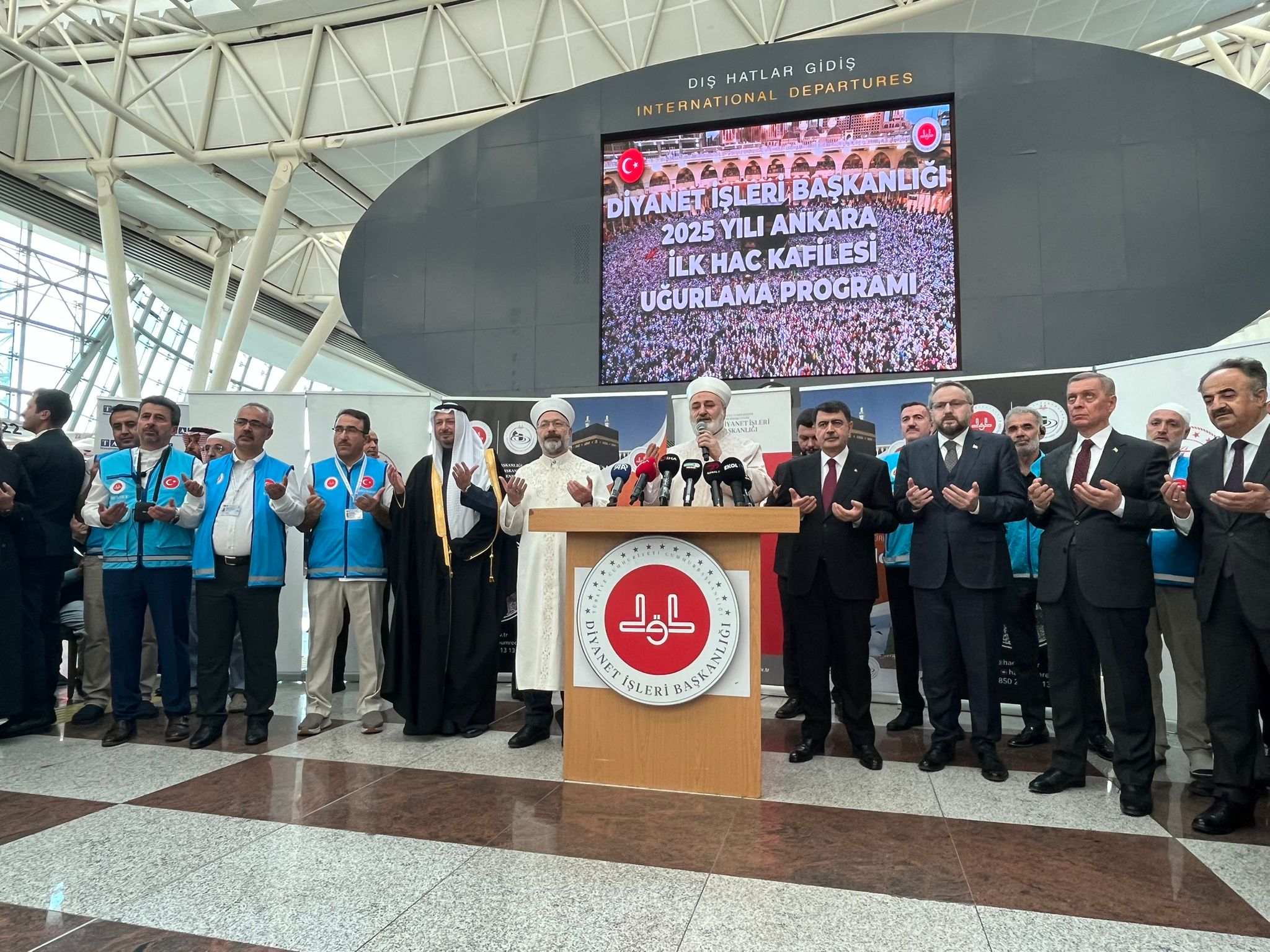 Programda konuşan Diyanet İşleri Başkanı Prof. Dr. Ali Erbaş, "Biz önceki zamanlarda hacca gittiğimizde saatlerce havaalanında beklerdik. Şimdi böyle bir şey yok. Bu kolaylık işte sizlere nasip oldu. Sizler bundan istifade edeceksiniz. Aziz kardeşlerim biraz önce dedim ya ömrümüzde bir kere farz hac. Onu iyi değerlendirelim. Beytullah'ta tavaf yaparken Safa-Merve arasında sahi yaparken namaz kılarken Beytullah'ta çok iyi değerlendirelim. Kalbimiz orada olsun huşu içerisinde ibadetimizi yapalım. Hac Arafat'tır buyuruyor Peygamber Efendimiz. Arafat'a vakfemizi yaparken Rabbimize yakarırken gönülden tövbe istiğfar edelim. Tertemiz bir şekilde geri döneceğiz inşallah" ifadelerini kullandı.