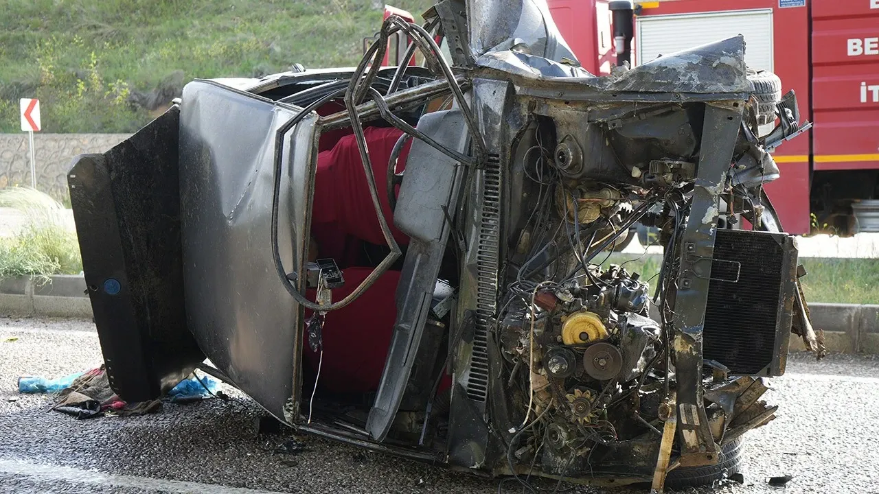 Meydana gelen trafik kazasında otomobil hurdaya dönerken, sürücü ile kocası Ü.B. (30) ve 4 yaşındaki kızı E.N.A. ağır yaralandı.