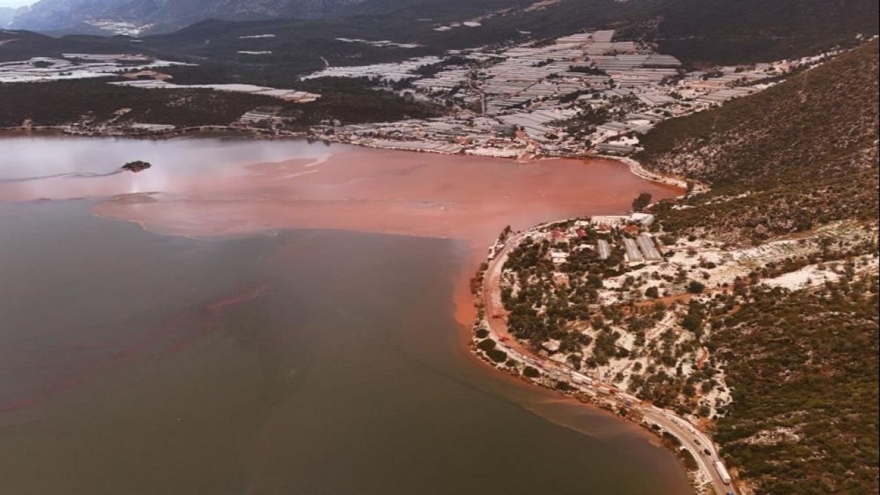 Antalya'nın Demre ilçesinde etkili olan dolu seralara zarar verdi, şiddetli yağış sele neden oldu. Dolu ve sel nedeniyle yollar ulaşıma kapanırken, denize akan çamur nedeniyle Demre sahilleri kızıla boyandı.