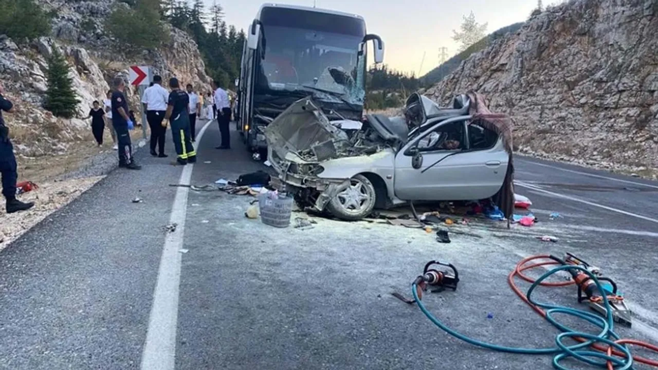 Yolcu otobüsünün otomobili yaklaşık 95 metre sürüklediği kazada otomobil sürücüsü olay yerinde hayatını kaybederken, otobüste bulunan 18 yolcudan 4 yolcu ve muavin hafif yaralandı. 112 Acil Servis'e yapılan kaza ihbarı üzerine trafik, jandarma ve ambulans ekipleri bölgeye sevk edildi.