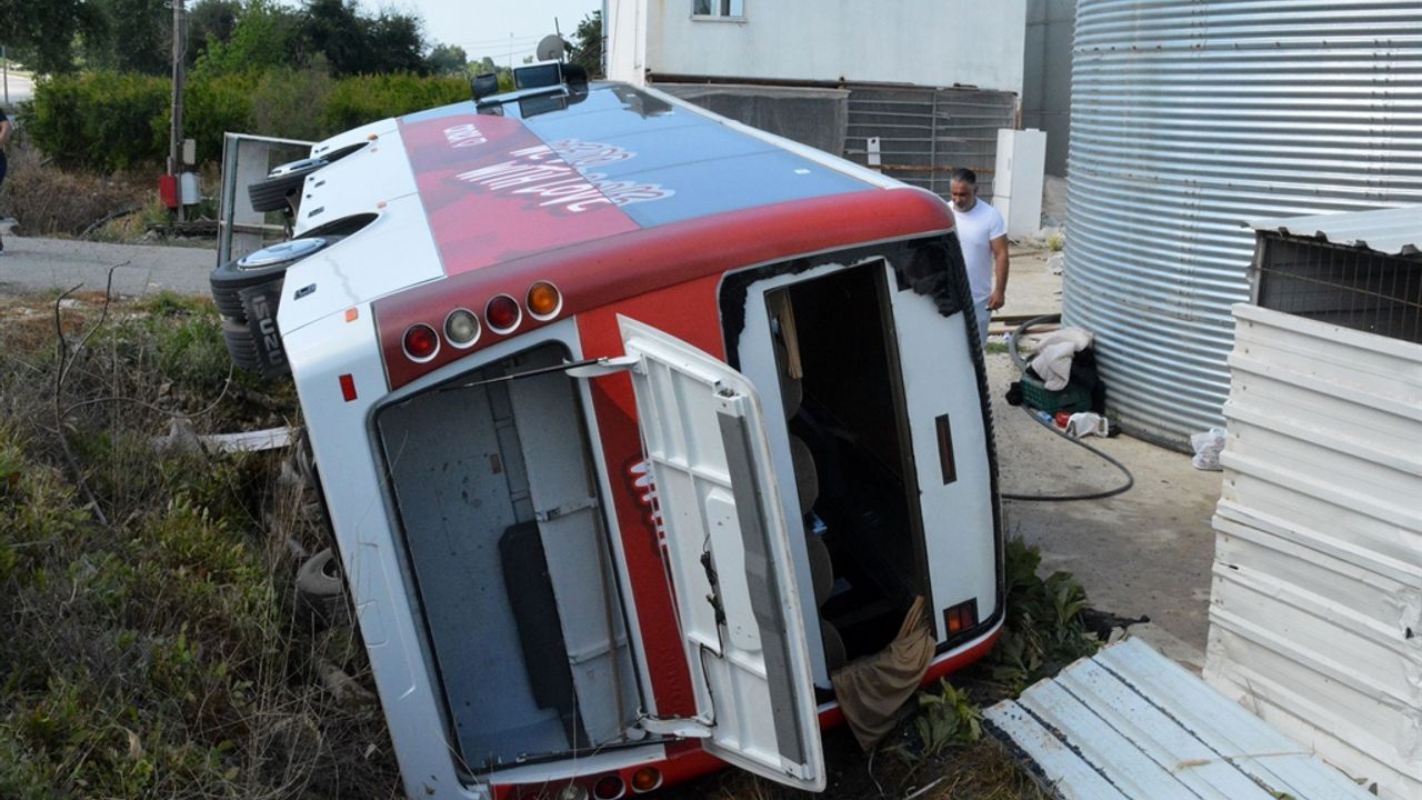 Manavgat'taki otellere turist taşıyan Fatih Karataş yönetimindeki 07 AVN 799 plakalı tur midibüsü, saat 08.00 sıralarında Gündoğdu Mahallesi'nde sürücünün hakimiyeti kaybetmesiyle yoldan çıktı. Minibüs, Yörük Mustafa Bey Bulvarı'nda seralar ile yol arasındaki bahçeye devrildi.