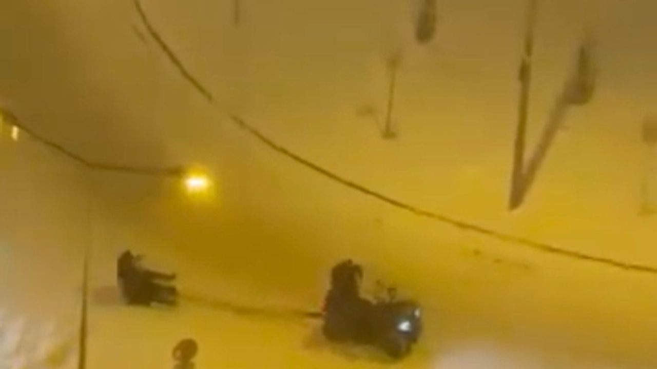 Kayapınar ilçesi Mastfroş Caddesi'nde dün akşam saatlerinde kar yağışının ardından buzlanan yolda bir kişi, ATV’ye bağladığı leğenle kaydı. O anlar cep telefonu kamerasıyla kaydedildi.