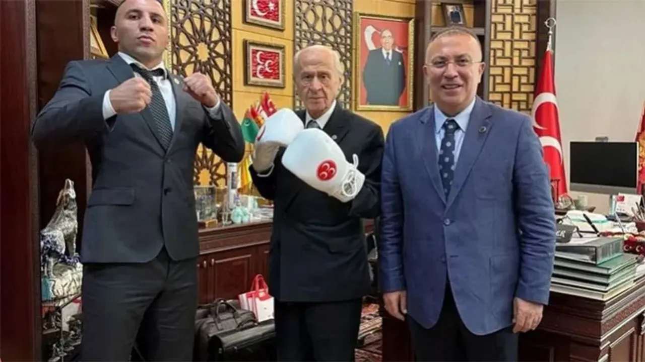 Şampiyon boksör Avni Yıldırım, Milliyetçi Hareket Partisi (MHP) Genel Başkanı Devlet Bahçeli'yi makamında ziyaret etti.
