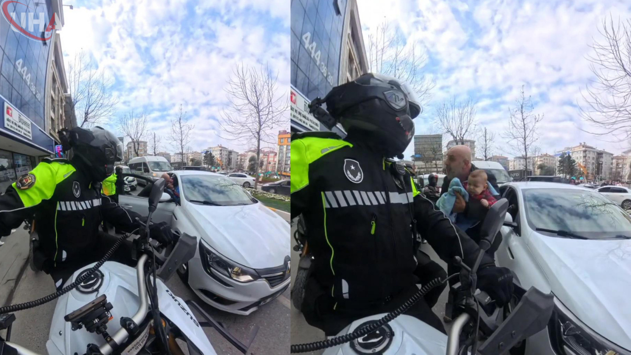 Bahçelievler'de dün 3 aylık bebekleri yere düşen bir aile, hastaneye gitmek için araçlarıyla yola çıktı. Trafik nedeniyle ilerleyemeyen aile, yolda gördükleri Bahçelievler Belediyesine bağlı motosikletli zabıta memurundan yolu açması için yardım istedi. Ailenin yardım talebi üzerine zabıta memuru bir süre yolu açarak ailenin trafikte ilerlemesini sağladı. Trafik nedeniyle aile yolda ilerleyemeyince bu sefer zabıta memuru, çalışma arkadaşının yanında durarak motorunu bırakıp arkasına binmesini istedi. Motorize zabıta ekibi, aileden bebeği alarak hızlı bir şekilde hastaneye yetiştirdi. O anlar, motosikletteki kamera tarafından kaydedildi.