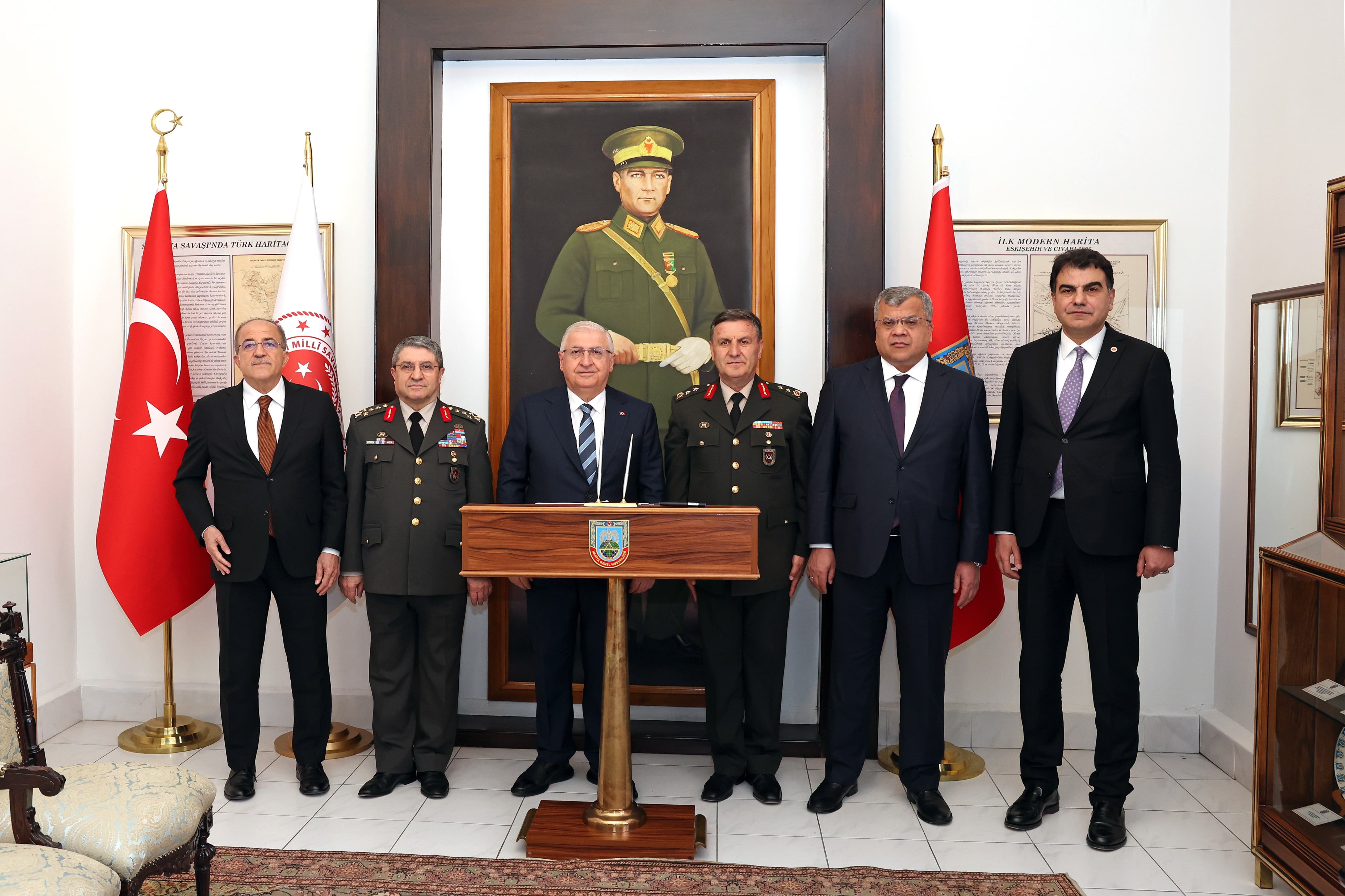 Bakan Güler, Harita Genel Müdürlüğü’nün kuruluşunun 130’uncu yıl dönümü ve ‘Haritacılar Günü’ dolayısıyla düzenlenen törene katıldı. Törende Bakan Güler’in beraberinde Kara Kuvvetleri Komutanı Orgeneral Selçuk Bayraktaroğlu ve Bakan Yardımcıları Şuay Alpay, Bilal Durdalı ve Musa Heybet de yer aldı. Burada bir konuşma yapan Bakan Güler, Harita Genel Müdürlüğünün kuruluşunun 130’uncu yıl dönümünü kutlayarak, “Harita teşkilatımız, kahraman ordumuzun öncülüğünde 1895 yılında Harita Komisyonu adıyla kurulmuş, geçen 130 yıllık süreçte, Türk Silahlı Kuvvetlerimizin her seviyedeki harita ve coğrafi bilgi ihtiyaçlarını karşılayan stratejik bir birim hâline gelmiştir. Benim de 2009-2010 yılları arasında Komutanlığını yürütmekten büyük bir şeref duyduğum harita teşkilatımız bugün, sahip olduğu imkân ve kabiliyetleri, donanımlı personeli ve modern altyapısı ile ülkemizde öncü uluslararası da alanda seçkin bir konumdadır” dedi.