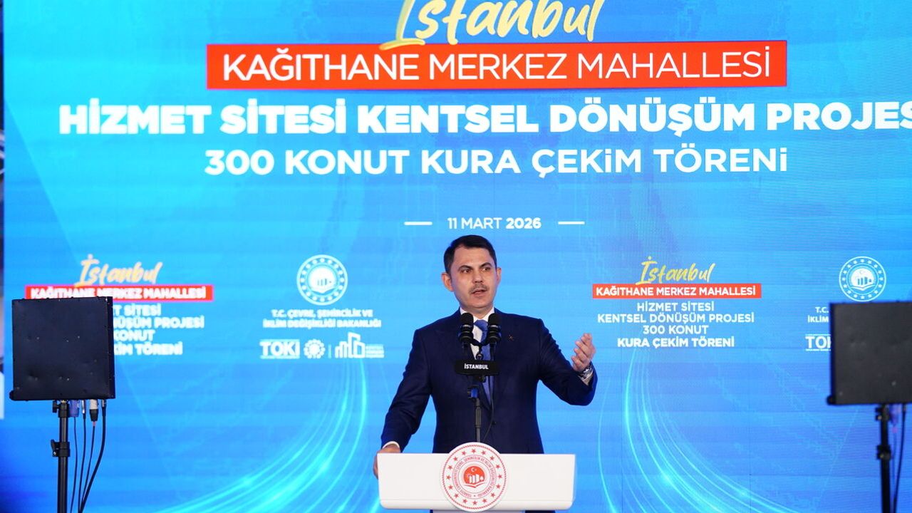 Çevre, Şehircilik ve İklim Değişikliği Bakanlığı öncülüğünde Kağıthane Belediyesi ve Toplu Konut İdaresi Başkanlığı (TOKİ) iş birliğiyle, Kağıthane Merkez Mahallesi'nde Hizmet Sitesi Kentsel Dönüşüm Projesi tamamlandı. Proje kapsamında 300 konut için kura çekim töreni düzenlendi. Kura ile hak sahiplerine anahtarları teslim edildi. Törene; Çevre, Şehircilik ve İklim Değişikliği Bakanı Murat Kurum, İstanbul Valisi Davut Gül, Kağıthane Belediye Başkanı Mevlüt Öztekin, hak sahipleri ve vatandaşlar katıldı.