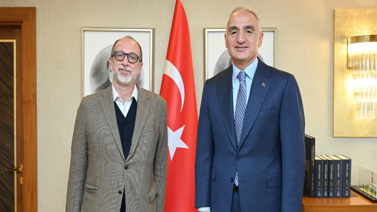 Kültür ve Turizm Bakanı Mehmet Nuri Ersoy, mimar, eleştirmen ve küratör Luca Molinari’yi bakanlık makamında kabul etti. Haydarpaşa ve Sirkeci’de müze, sergi ve tasarım projeleri kapsamında yürütülen çalışmaların konuşulduğu görüşmede mimarlık, müzecilik ve kültürel projeler alanındaki uluslararası deneyimler ele alındı. Bakan Ersoy, Molinari ile gerçekleşen görüşmeyi sanal medya hesaplarından paylaştı. Ersoy, "Haydarpaşa ve Sirkeci’de müze, sergi ve tasarım projeleri kapsamında küratörlük çalışmalarını yürüten İtalyan mimar, eleştirmen ve küratör Luca Molinari ile bakanlığımızda bir araya geldik. Venedik Bienali'nde ödüle layık görülen ve 30 yılı aşkın deneyimiyle mimarlık, tasarım ve müzecilik alanlarında uluslararası ölçekte küratöryel çalışmalar yürüten Molinari; sergiler, yayın projeleri, müze çalışmaları ve kültürel projeler aracılığıyla tasarım kültürünü geniş kitlelerle buluşturuyor. Görüşmemizde, Haydarpaşa ve Sirkeci’de müze, sergi ve tasarımlarına yönelik yürütülen çalışmalar başta olmak üzere mimarlık, müzecilik ve kültürel projeler alanındaki uluslararası deneyimlerin ülkemizde hayata geçirilen projelere sağlayacağı katkıları değerlendirdik. Nazik ziyaretleri için kendilerine teşekkür ediyorum" ifadelerini kullandı.