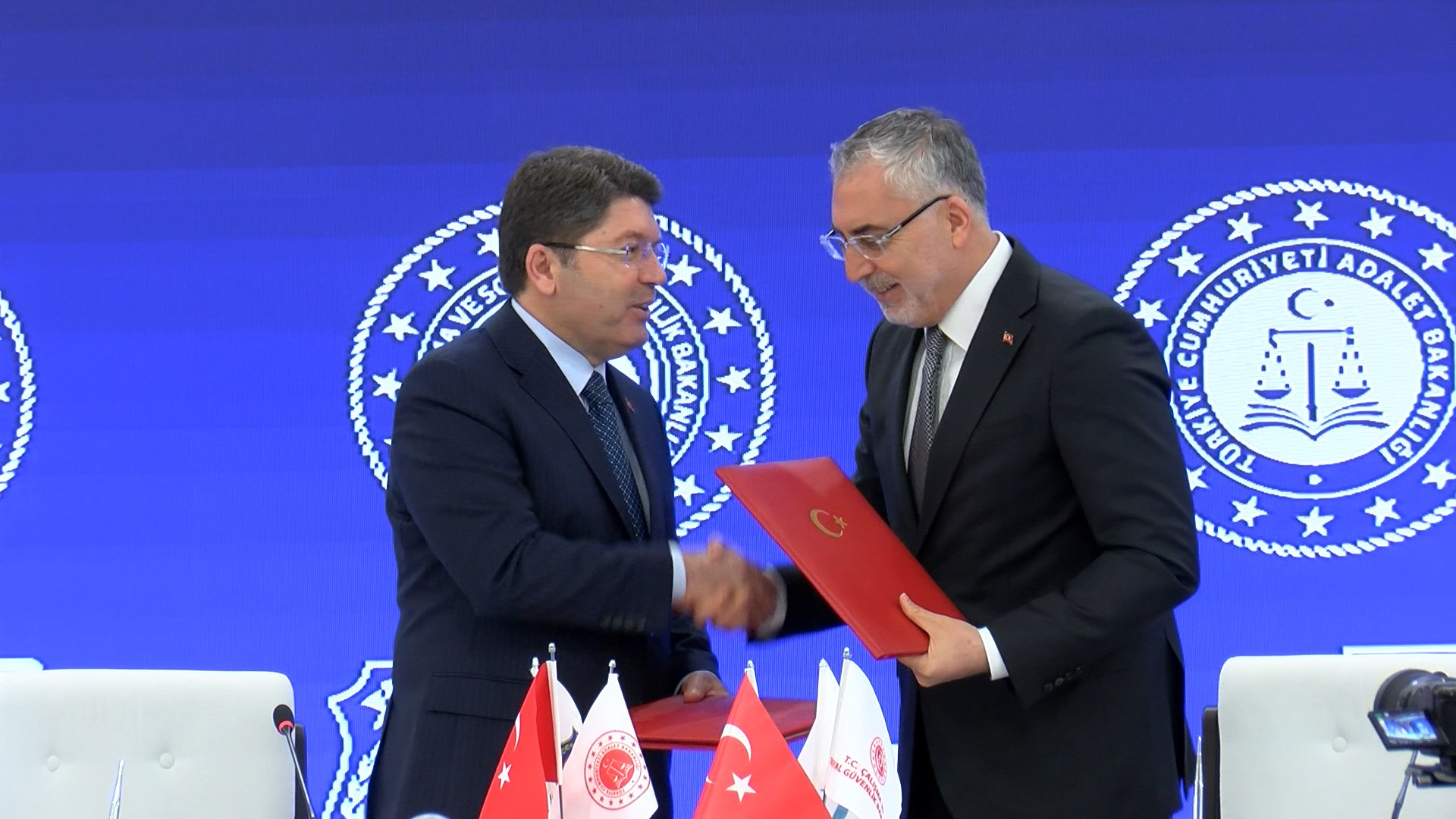 Adalet Bakanı Yılmaz Tunç ile Çalışma ve Sosyal Güvenlik Bakanı Vedat Işıkhan, Ankara Hakimevi'nde 'Hükümlü ve Yükümlülerin İstihdamına Yönelik İş Birliği Protokolü İmza Töreni'ne katıldı. Protokol ile hükümlü ve yükümlülerin mesleki becerilerinin geliştirilmesi, istihdama katkı sağlaması, tahliye sonrası hayata uyumlarının kolaylaştırılması amaçlandı. Adalet Bakanı Tunç, "Bugün imzalayacağımız iş birliği protokolüyle; hükümlüler, tahliyelerine 1 ay kala İŞKUR iş ve meslek danışmanlarıyla bire bir görüşebilecek, ceza infaz kurumlarında ve denetimli serbestlik müdürlüklerinde danışmanlık hizmeti alabilecekler. Ayrıca; hükümlü ve yükümlüler için iş arama becerileri ve mülakat hazırlıkları konularında seminerler düzenlenecek. Ceza infaz kurumlarımızda ve denetimli serbestlik müdürlüklerimizde sunulacak bu seminerler ve danışmanlık hizmetleri, bireylerin özgüvenini yeniden inşa edecek, onlara meslek dünyasının kapılarını aralayacaktır. Protokolde ayrıca; kendi işini kurma arzusu taşıyan eski hükümlüler için hibe destekleri hakkında rehberlik sağlanması ve girişimcilik seminerlerinin düzenlenmesi de yer almaktadır. Böylece istihdam yoluyla yeniden topluma kazandırılan her birey, suça yeniden sürüklenme riskini azaltacak, toplumsal barışa ve ekonomik üretime katkı sağlayarak sosyal dokunun onarılmasına katkıda bulunacaktır" diye konuştu.