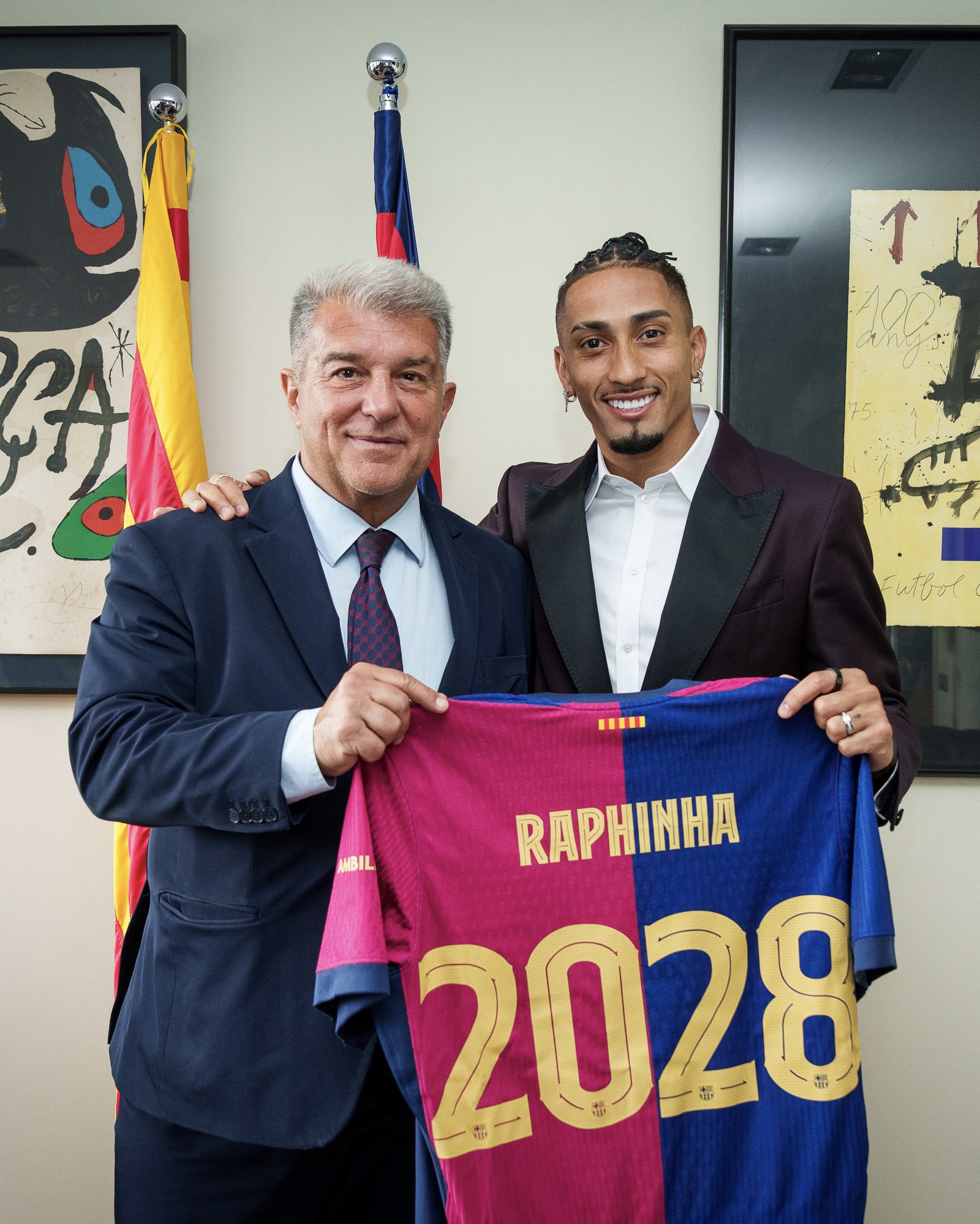 La Liga, İspanya Kral Kupası ve İspanya Süper Kupası’nda şampiyonluğa ulaşan Barcelona, bu sezon gösterdiği performansla yıldızlaşan 28 yaşında Brezilyalı kanat oyuncusu Raphinha’nın sözleşmesinin 2028 yılına kadar uzatıldığını duyurdu. Katalan deviyle tüm kulvarlarda 56 maça çıkarak 34 gol ve 25 asistlik katkı sağlayan Brezilyalı oyuncu kariyer sezonunu geçirirken, Ballon d'Or adayları arasında da yer alması bekleniyor.