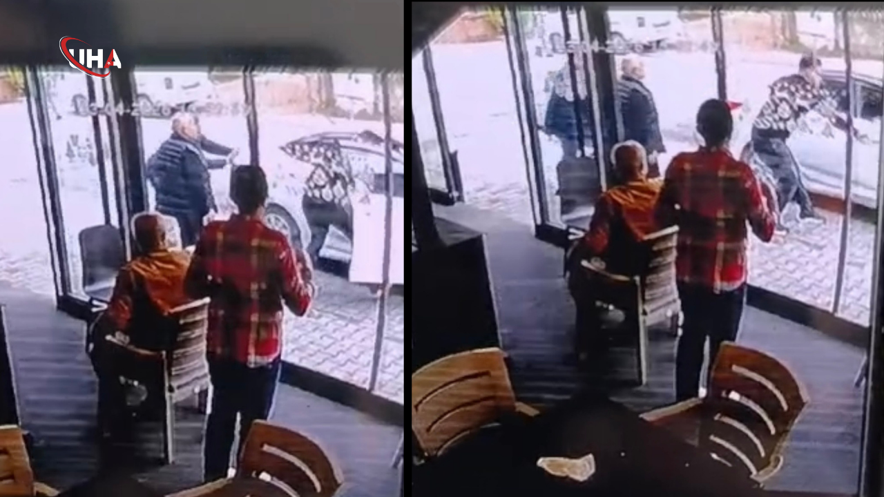 Olay, sabah saatlerinde Kemerköprü Mahallesi'ndeki bir pastanenin önünde meydana geldi. Otomobilini iş yerinin önüne park eden sürücü, el frenini çekmeyi unuttu. Eğimli zeminde bir süre sonra hareket etmeye başlayan otomobil geri kaymaya başladı. Durumu fark eden işletme sahibi Kemal Ateş, hızla iş yerinden çıktı ve araç kapısından uzanarak el frenini çekti. Otomobilin durdurulduğu o anlar, iş yerinin güvenlik kamerasına yansıdı.