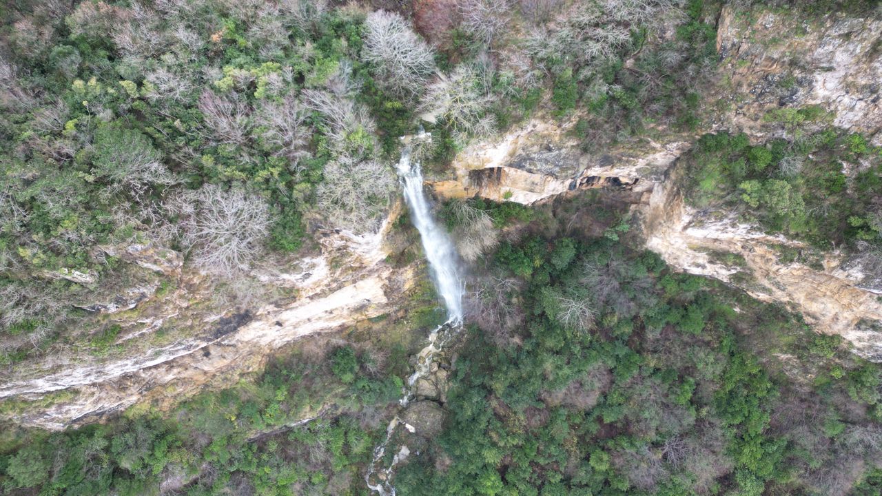 İnkumu tatil beldesinde yoğun yağış sonrasında Güzelcehisar köyü civarında, yaklaşık 100 metre yükseklikten düşen su, şelale görüntüsü oluşturdu. İnkumu'nda zaman zaman yağışların ardından ortaya çıkan şelale, dronla görüntülendi.