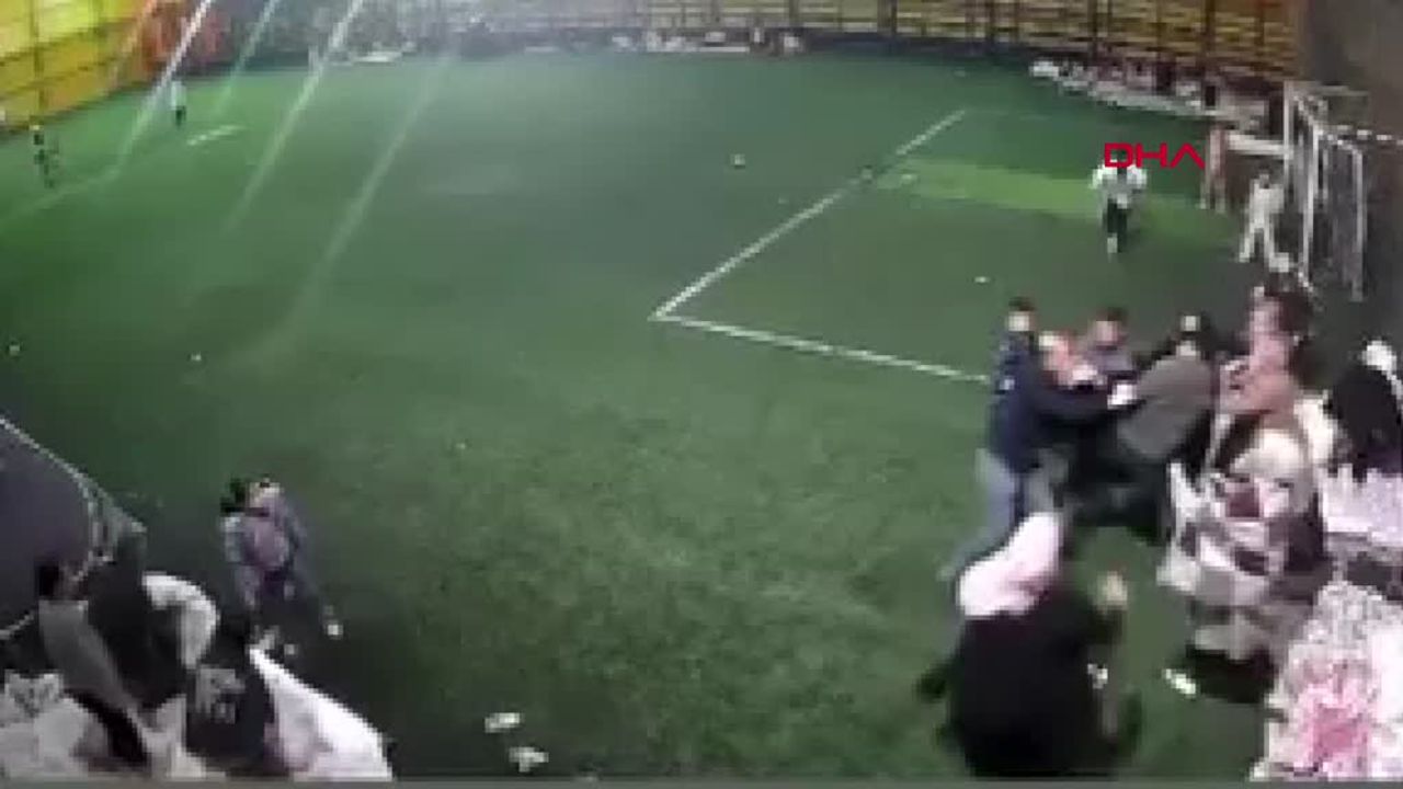 Başakşehir'de Şahintepe kapalı spor parkındaki futbol sahasında geceyi geçiren aileler arasında tartışma çıktı. Bilinmeyen bir nedenle çıkan tartışma kısa sürede kavgaya dönüştü. Tekme ve yumrukların havada uçuştuğu kavga anları güvenlik kameralarına yansıdı.