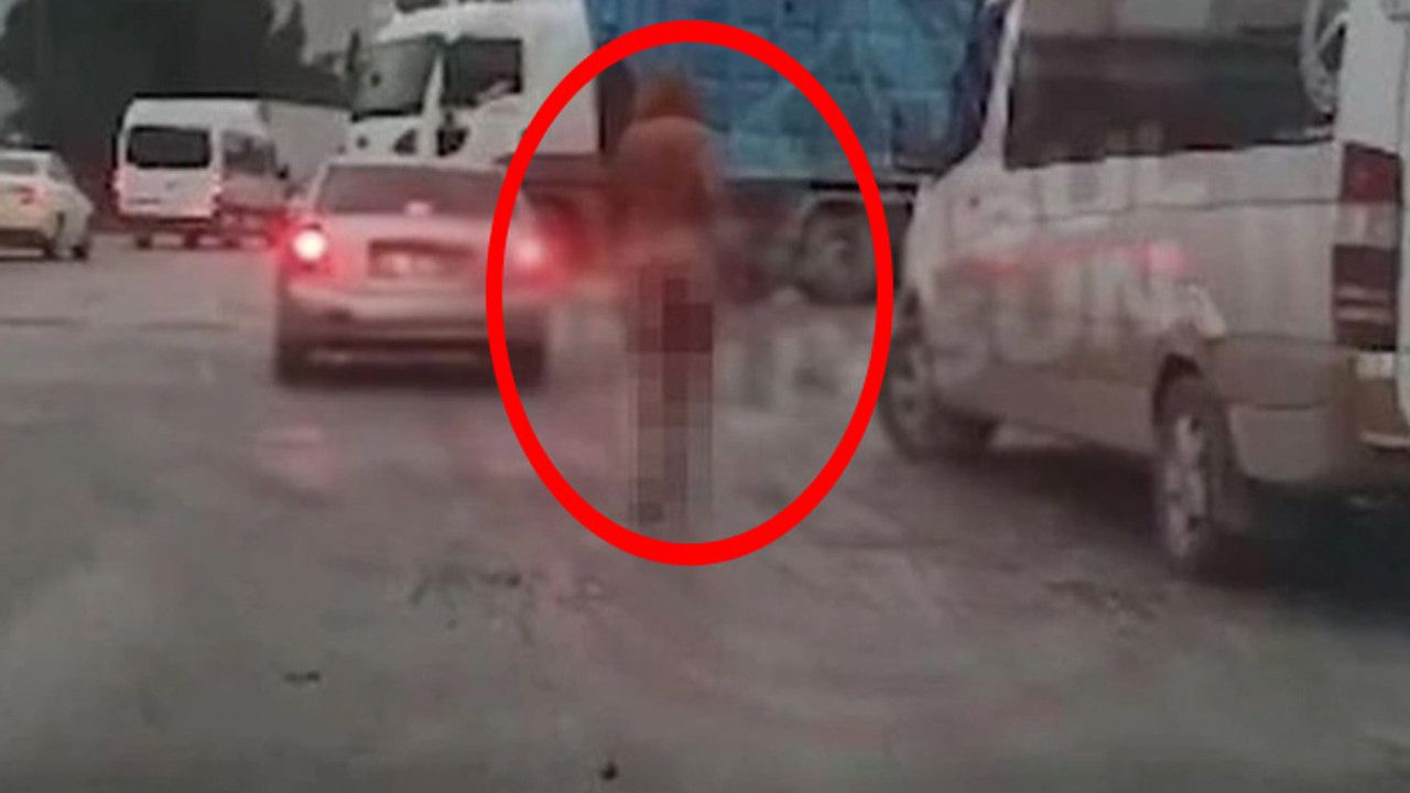 Olay, bugün öğle saatlerinde Başakşehir’in işlek bir caddesinde meydana geldi. Kimliği henüz belirlenemeyen bir kadın, yol ortasında tamamen çıplak halde yürümeye başladı. Şaşkına dönen vatandaşlar durumu cep telefonlarıyla kaydederken, bir motosikletli sürücünün kask kamerası olayın en net görüntülerini kaydetti.