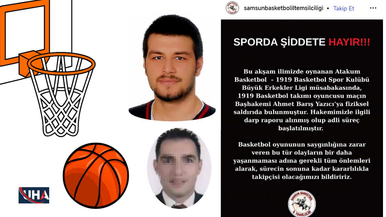 Diğer yandan Samsun Basketbol İl Temsilciliği tarafından konuyla ilgili yazılı açıklama yapıldı. Açıklamada, "Bu akşam ilimizde oynanan Atakum Basketbol-1919 Basketbol Spor Kulübü Büyük Erkekler Ligi müsabakasında, 1919 Basketbol takımı oyuncusu maçın Başhakemi Ahmet Barış Yazıcı'ya fiziksel saldırıda bulunmuştur. Hakemimizle ilgili darp raporu alınmış olup adli süreç başlatılmıştır. Basketbol oyununun saygınlığına zarar veren bu tür olayların bir daha yaşanmaması adına gerekli tüm önlemleri alarak sürecin sonuna kadar kararlılıkla takipçisi olacağımızı bildiririz" denildi.