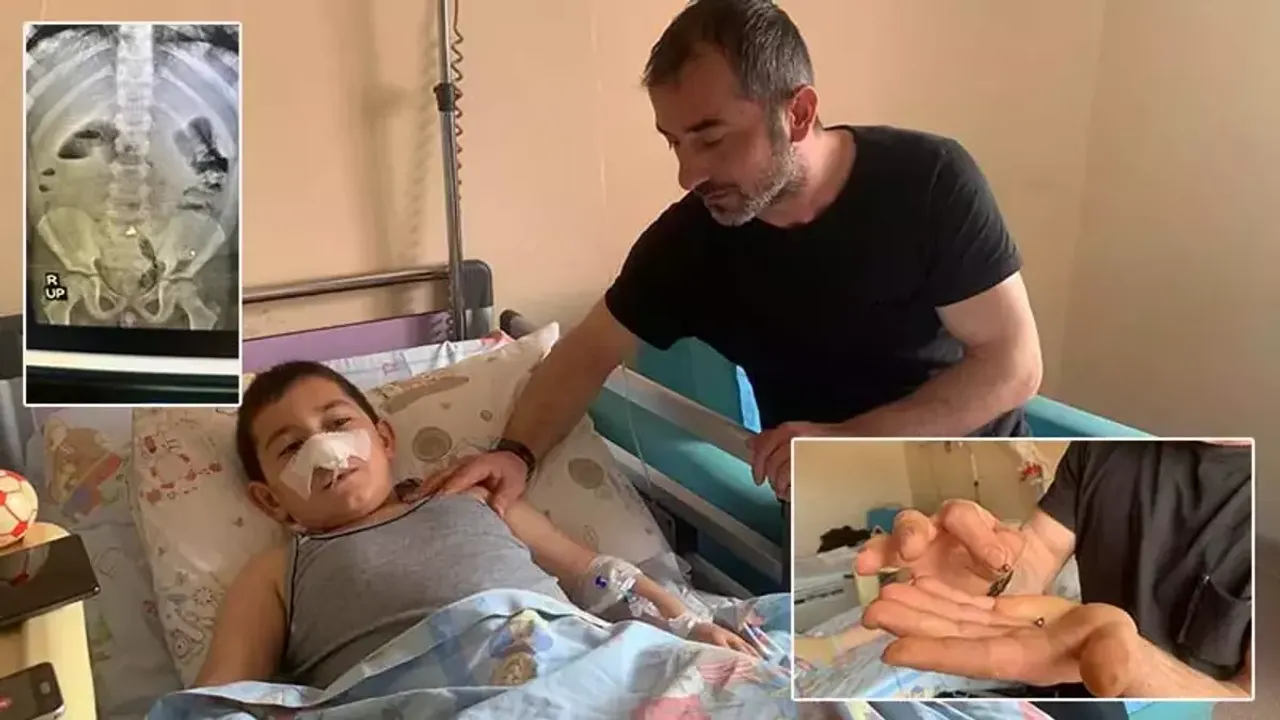 Batman’da mıknatıs yutan ve kusma, karın ağrısı şikayetiyle ailesi tarafından Batman Eğitim ve Araştırma Hastanesi Acil Servisi’ne getirilen Faruk Akman, ilk değerlendirme sonrası yakın takip amacıyla Çocuk Cerrahisi Kliniği’ne yatırıldı. Takipte mıknatısların sindirim sisteminde ilerlemediğinin görülmesi üzerine, çoklu mıknatısların bağırsak duvarlarına yapışarak delinmeye neden olabileceği belirtildi. Bunun üzerine tanısal laparoskopi kararı verildi. Operasyonda bağırsakların 3 farklı noktasında delinme tespit edildi. Çocuk Cerrahisi Uzmanı Op. Dr. Mücahit Erman ve ekibi tarafından yapılan laparoskopi destekli cerrahi müdahalede yaklaşık 5 santimetrelik hasarlı bağırsak bölümü, mıknatıslarla birlikte çıkarıldı. Operasyon sonrası genel durumu hızla düzelen Faruk Akman, beslenmesinde sorun görülmemesi üzerine taburcu edildi.