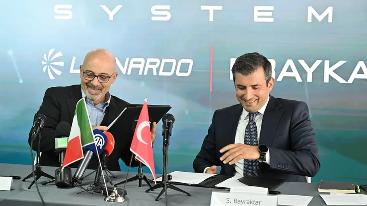 Leonardo Üst Yöneticisi (CEO) ve Genel Müdürü Roberto Cingolani ile Baykar Yönetim Kurulu Başkanı Selçuk Bayraktar, iki şirket arasında savunma ve havacılık alanlarında kurulan stratejik ortaklık kapsamında imzalanan ortak girişim anlaşmasının imza törenine katıldı.