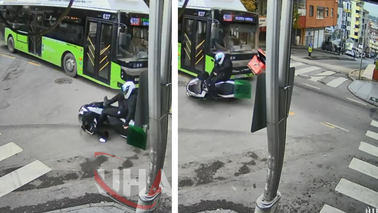 Kaza, 24 Aralık günü saat 12.00 sıralarında Yeni Mahalle Fatih Caddesi'nde meydana geldi. Sürücülerinin isimleri ve plakaları öğrenilemeyen belediye otobüsü ile motokurye kavşakta çarpıştı. Çarpışmanın etkisiyle savrulan motosikletten düşen sürücü sürüklenerek hafif şekilde yaralandığı kazaya ilişkin güvenlik kamerası görüntüsü ortaya çıktı.