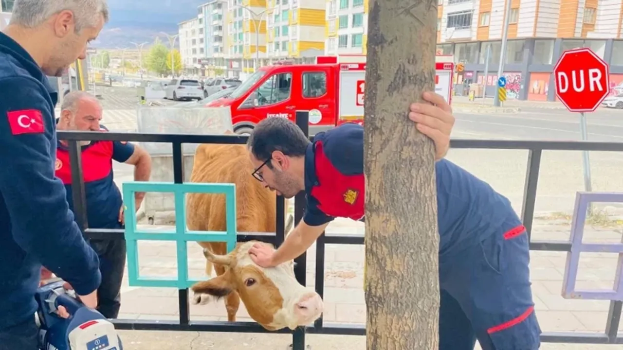 Olay, Kültür Mahallesi Bingöl Caddesi üzerindeki bir parkta meydana geldi. Sahipli olduğu öğrenilen inek, otladığı sırada başını parkın demir korkulukları arasına sıkıştırdı. Durumu fark eden vatandaşlar hemen itfaiye ekiplerine haber verdi.Olay yerine gelen ekipler, hidrolik kesici kullanarak kısa sürede ineği sıkıştığı yerden çıkardı. Başarılı bir şekilde tamamlanan kurtarma operasyonunun ardından hayvan sahibine teslim edildi.